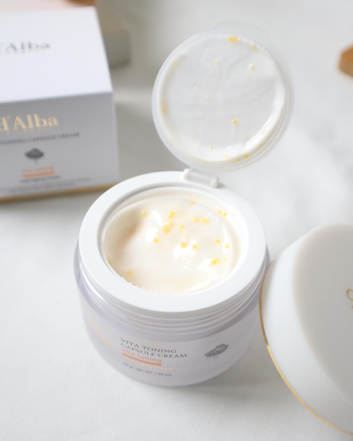 ビタミンカプセルxホワイトニングクリームレイヤーで、ワントーン明るい肌へ💎二重ビタミンケアで、くすみ・小じわ・肌トーンをケア。ビタミンC・グルタチオン・ナイアシンアミド配合のクリームベースに、ビタミンE・Kカプセルをプラス。べたつかずしっとり...