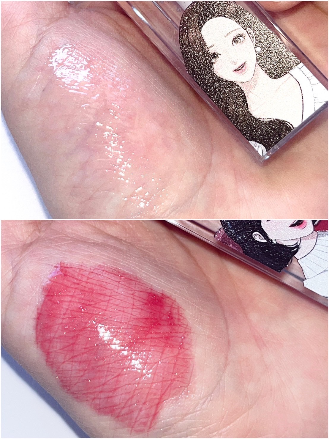 左上のカラーが薄めで可愛いのだけれどこれベースだと薄づきで物足りなさ感じません? 艶感やラメ感はきれいなのにもったいない〜!と言う方 濃いめの色で全部まかなっちゃいましょう! このパレットはメインラメがなくて全体的に細かいラメが入ったパレットなので濃い色をベースに薄めに塗って使用して しっかり発色ありつつも肌なじみのいいピンクなので綺麗に仕上がります◎