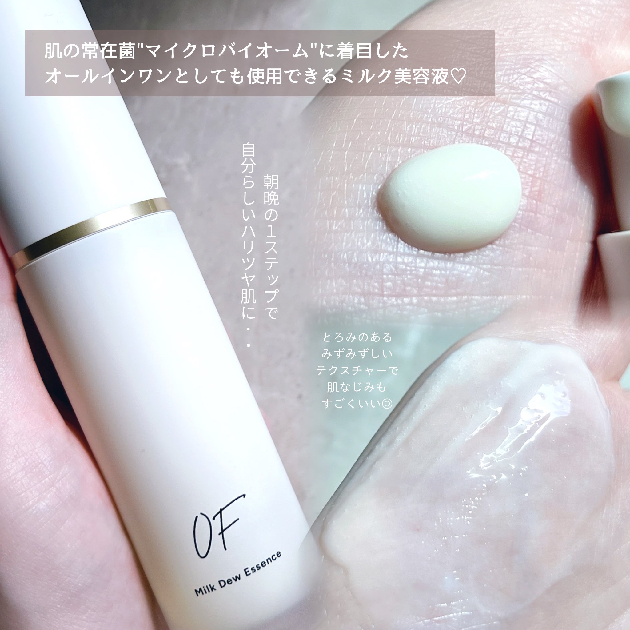 OFさまからいただきました!◇OFMilkDewEssence肌の常在菌“マイクロバイオーム”に着目したオールインワンミルク美容液✨みずみずしいテクスチャーで伸びが良く、肌なじみ◎洗顔後の肌にこれ1本でケアできるので忙しい日でも楽ちん!感想が...