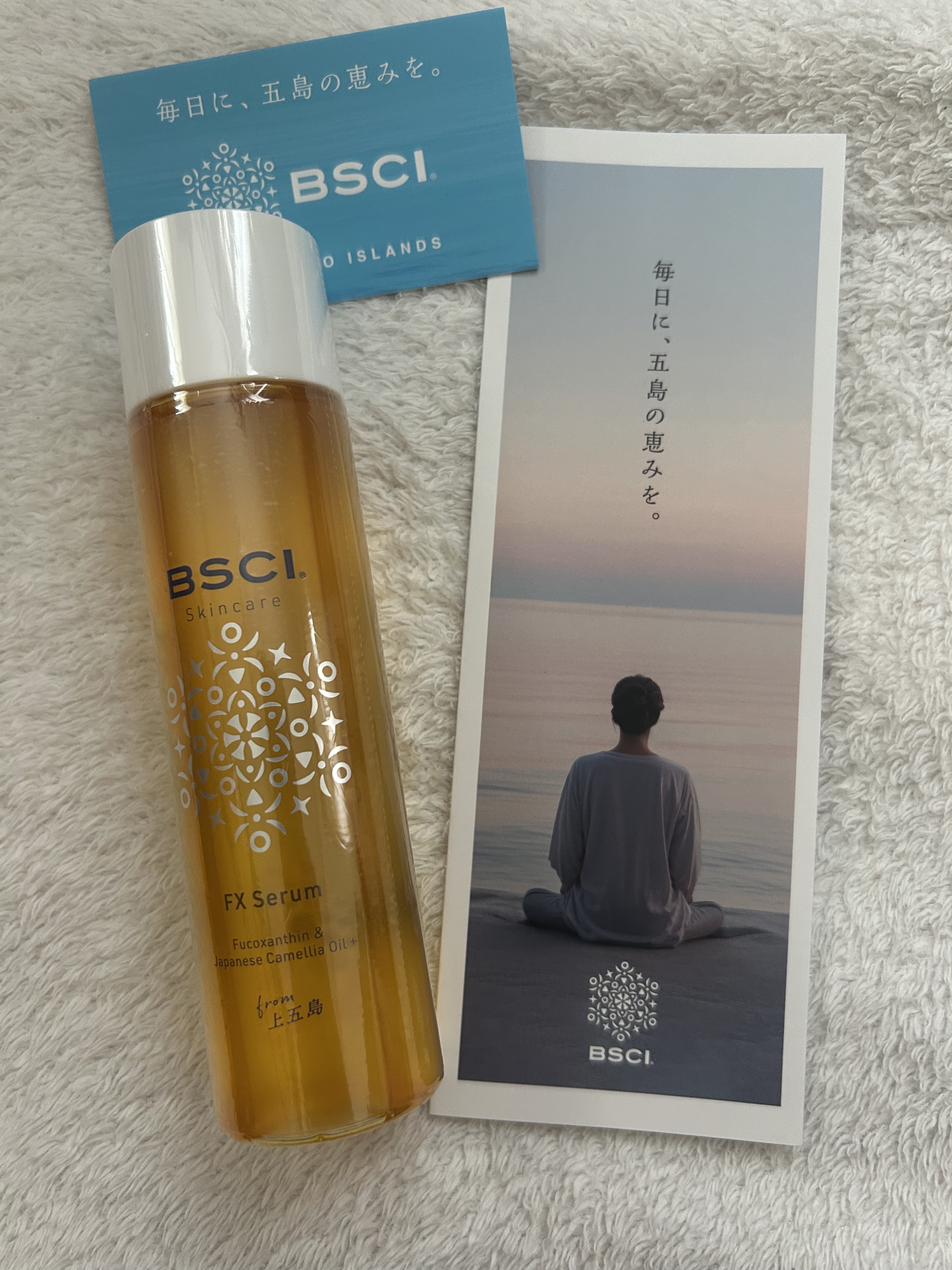綺麗な「しま」で生まれた自然だけをまとう✨ <BSCI>は五島列島の上五島において、廃校となってしまった学校を活用し、海の恵みである貴重な天然色素フコキサンチンと五島の恵みである椿オイルを使用したとても上質なスキンケアアイテムを作っています😊 化粧水・美容液・乳液の3つの機能を1つに凝縮した、2層式のセラム。自然由来の成分だけを使用しており、さらにそのうちの99%以上はオーガニック由来というこだわり。 この1ステップでお化粧水・美容液・乳液の3ステップを叶えてくれるので、手早くスキンケアをすることが出来るのも、忙しい主婦としてはとても助かります。