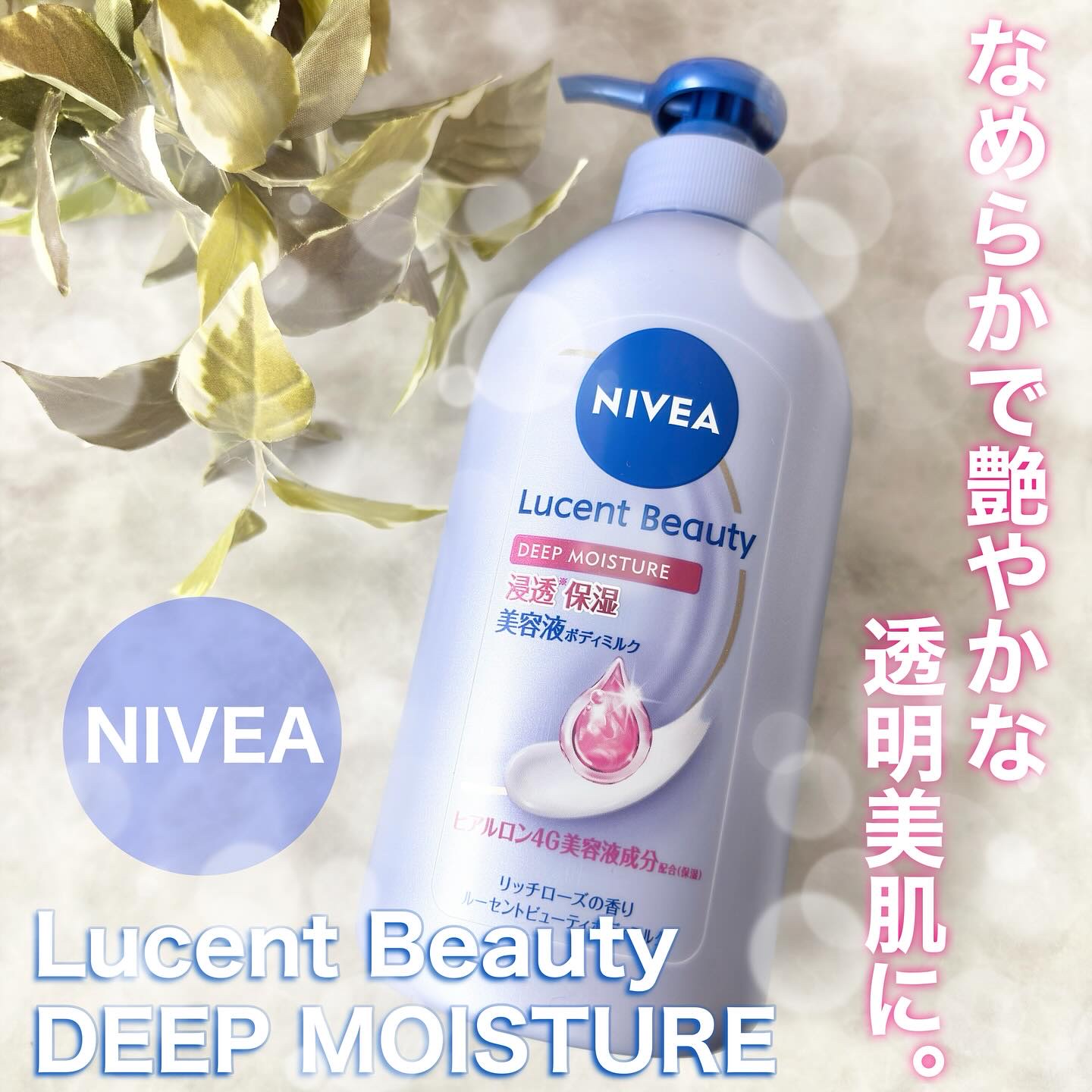 - うるおって透明感あふれる美肌へ導く、高保湿美容液ボディミルクシリーズ。 ニベアが考えるボディの美肌の鍵「キメ・つや・なめらかさ」にアプローチ。 うるおいに満ちて透明感のある肌に導く。ヒアルロン4G美容液成分※1 配合(保湿) キメが整ってなめらかで艶やかなうるおい透明美肌に。美容液ミルクが角層深部に浸透し、うるおいが長続き。 浸透ヒアルロン成分配合:浸透型※2ヒアルロン酸※3、グリセリン(すべて保湿) 気分満たされる、華やかで上質なリッチローズの香り ※1 ヒアルロン酸Na、グリセリン、グリコーゲン、グリセリルグルコシド、グルコサミン ※2 角層まで ※3 加水分解ヒアルロン酸