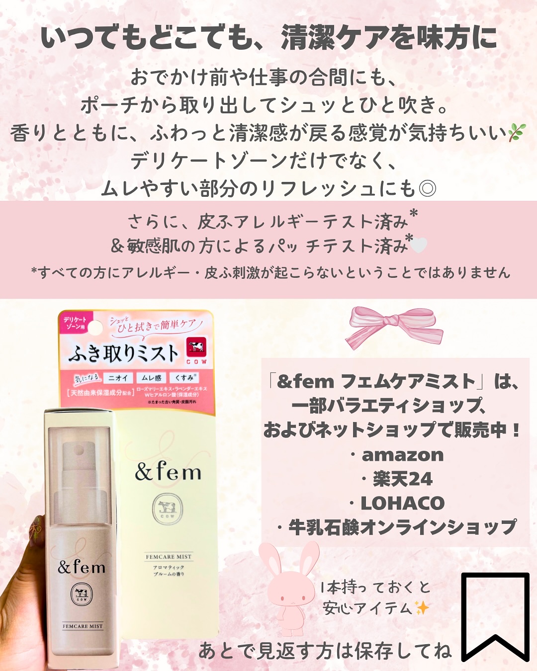 牛乳石鹼のフェムテックブランド@andfem_official「&fem(アンドフェム)」フェムケアミスト30mL1,540円(税込)シュッとひと拭きでデリケートゾーンケアできるフェムケアミストが2025/9/10に新発売!トイレットペーパー...