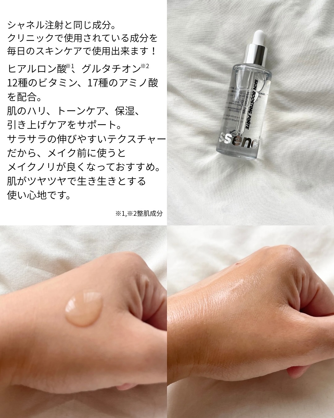 essenciel【スキンブーストフォルテセラム】韓国の清潭洞(チョンダム)のクリニックで使用されているセラム!!ヒアルロン酸、12種のビタミン、17種のアミノ酸を贅沢配合✨️肌ツヤ、キメ、コンディションを整えてくれる😍朝晩関係なく使えて、特...