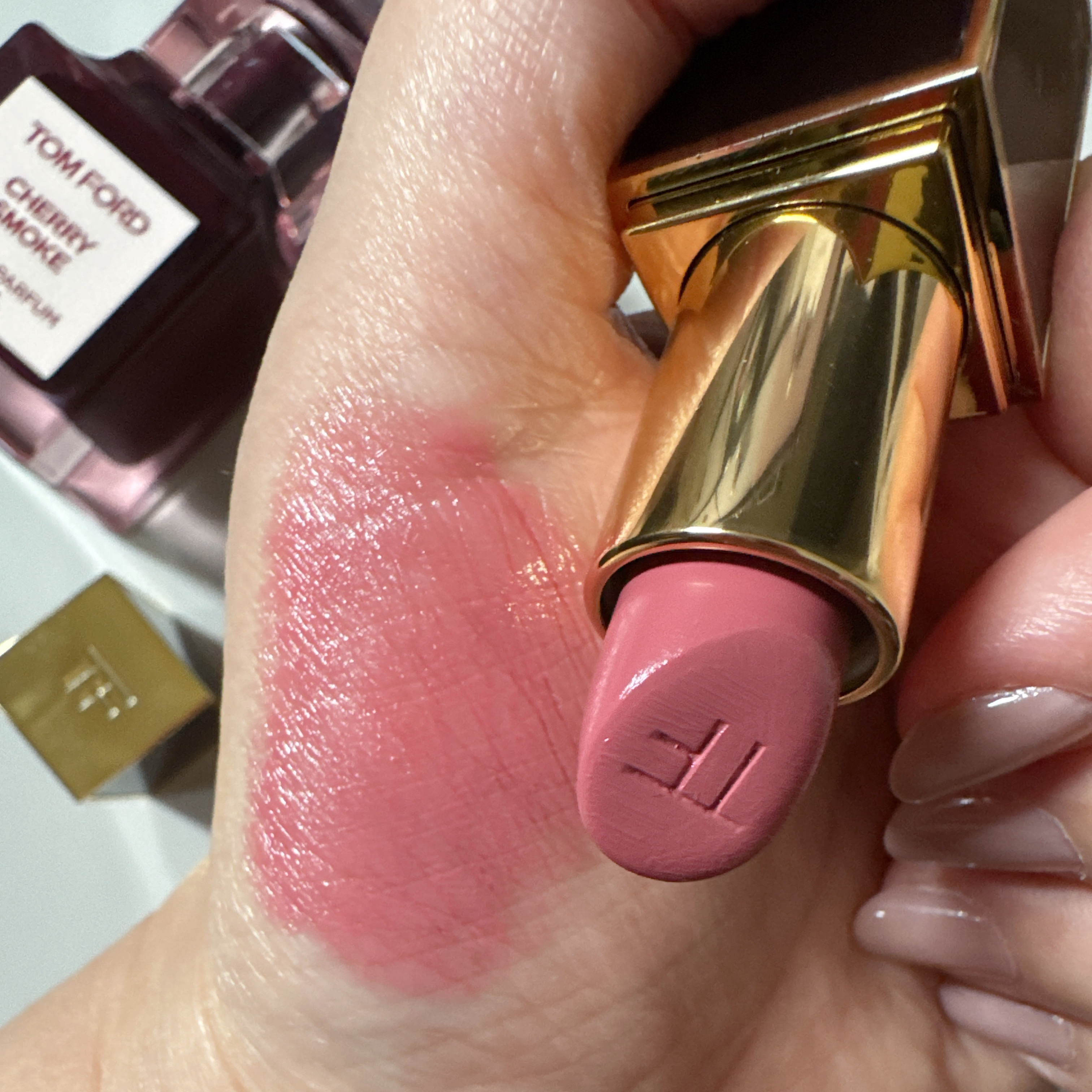 🍒🍒🍒🍒🍒🍒🍒🍒🍒🍒🍒🍒🍒🍒2023年3月3日発売✨TOMFORDBEAUTYアイカラークォード02SCチェリースモーク限定色右側の2色を重ねました🍒ペーパーにチェリースモークオードパルファムスプレィのフレグランスをふりかけてくれ、めちゃくち...
