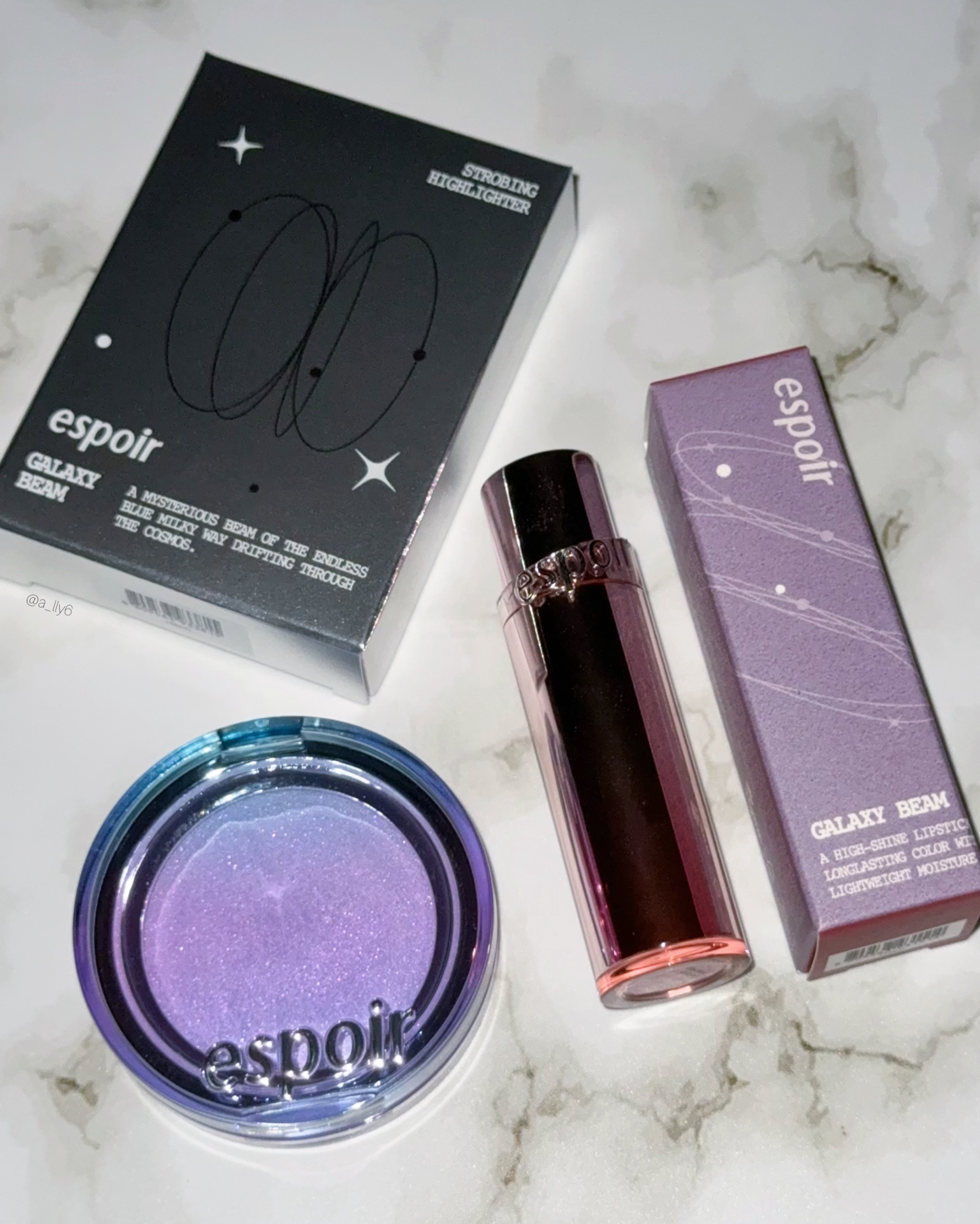 espoirギャラクシービームコレクション✨⭐️💫ストロービングハイライター #08ギャラクシー💫ノーウェアリップスティック #ダークチェリーを試してみました◎💫ストロービングハイライター #08ギャラクシーラベンダーカラーが可愛いハイライタ...