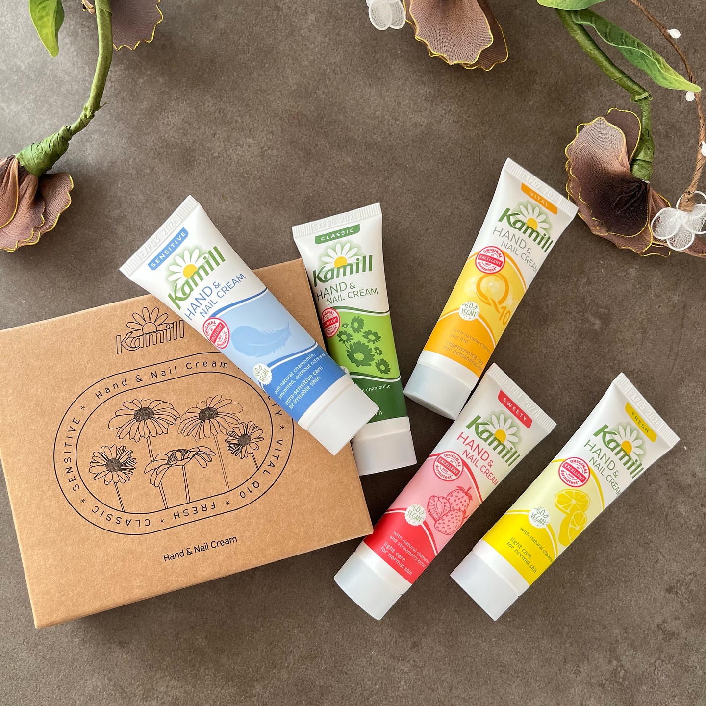ヴィーガンハンドクリーム🌿Kamill(カミール)【企画セット】ハンド&ネイルクリームミニ30ml×5本入韓国オリーブヤング5年連続1位のハンドクリームブランドカミールのベスト5をミニサイズで楽しめる企画セット。ドイツのダーマテストで肌の低刺...