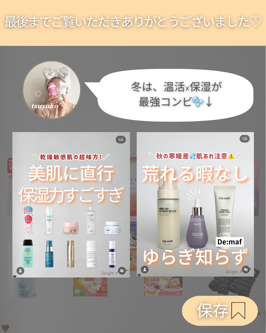 いつも見ていただきありがとうございます🥰 他の投稿はこちらから▷▷▷ @tsuyako__beauty こんばんは!つや子です🙋‍♀️ 今日は「芯から温まる冷え対策グッズ🔥」 をご紹介🙌🏻 まだエアコン付けてる人いるー?🙋‍♀️ 私の地域、なぜかこの時期に 湿度高くてムシムシ😵‍💫 だからつい除湿しちゃう💦 日中はまだ暑いけど、 朝晩ひんやりしてきたよね🍃 気づいたら体が冷えてた…なんてことも🥶 そろそろ“温活”の準備、しておこっ🔥 冷えは万病のもとって言うし🧡 ダントツな美肌になれるˎˊ˗ お金をかけなくてもキレイになりたいを 応援する40代元美容部員の情報発信部屋💁‍♀️  ̄ ̄ ̄ ̄ ̄ ̄ ̄ ̄ 他の投稿はこちらから ▷▷▷@tsuyako__beauty  ̄ ̄ ̄ ̄ ̄ ̄ ̄ ̄ いいねとフォローしてもらえると 励みになります🥹ˎˊ˗ #40代美容#温活 #冷え対策 #秋支度#芯から温まる