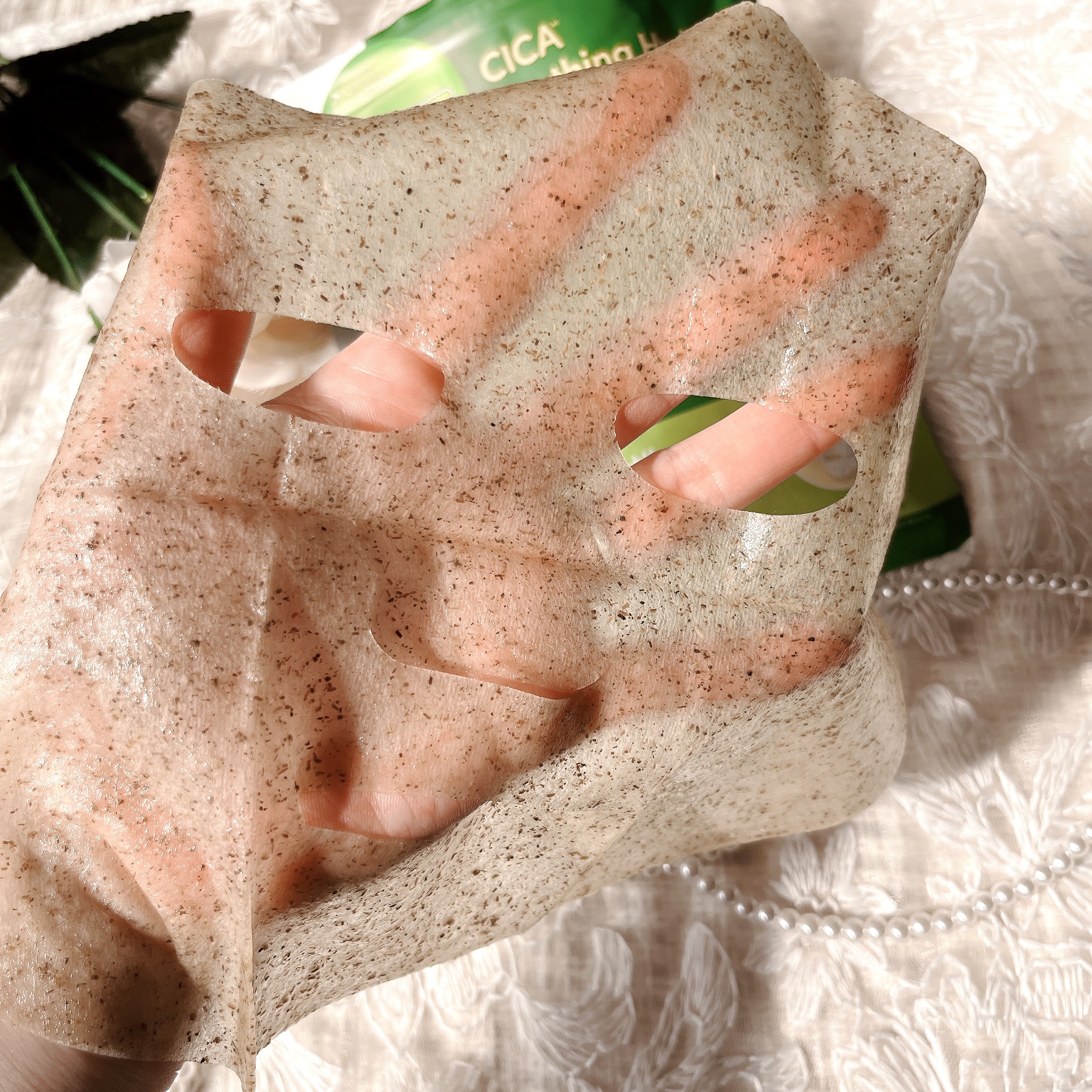 - ハーブエキス*×生ヨモギ*シートでゆらぎがちな肌を整え潤いあるツヤ肌へ。 乾燥や肌荒れを防いで肌を整える自然由来のハーブエキスを14種類配合。 また保湿や肌ひきしめ・整肌作用が期待できることからハーブの女王とも呼ばれるヨモギの葉をすりつぶし、たっぷりと混ぜ込んだオリジナルシートとともに乱れやすい肌環境を整え、潤いたっぷりと補給します。 *保湿成分