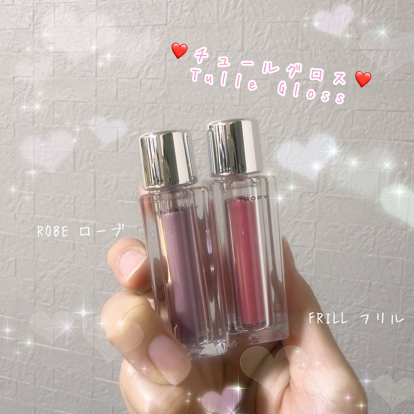 【暗がりで輝く】ENTROPYチュールグロスチュールのような煌めきの透け感のあるグロス🧚♂️SILK(シルク)澄んだ光のヴェールに繊細な輝きを散りばめたピュアグロウチュールグロスFRILL(フリル)血色感をほんのり添えるピーチコーラル🌱◯角...