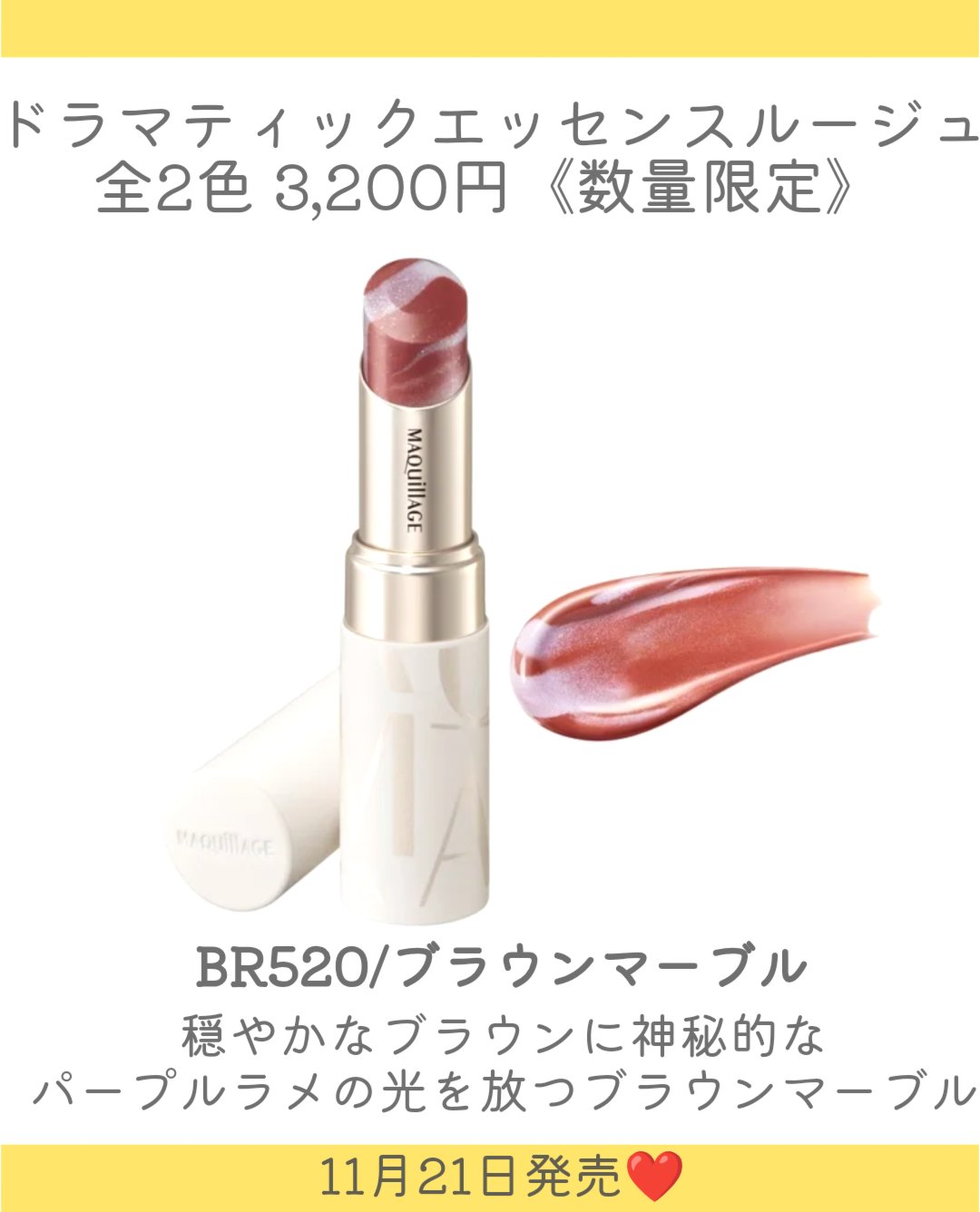 マキアージュ限定BloomCollectionマーブルが可愛い💓ドラマティックエッセンスルージュPK320ピンクマーブル可愛らしいピンクカラーに、イエローゴールド系のラメ✨BR520ブラウンマーブル優しいシアーブラウンにブルー系ラメ🩵カスタ...