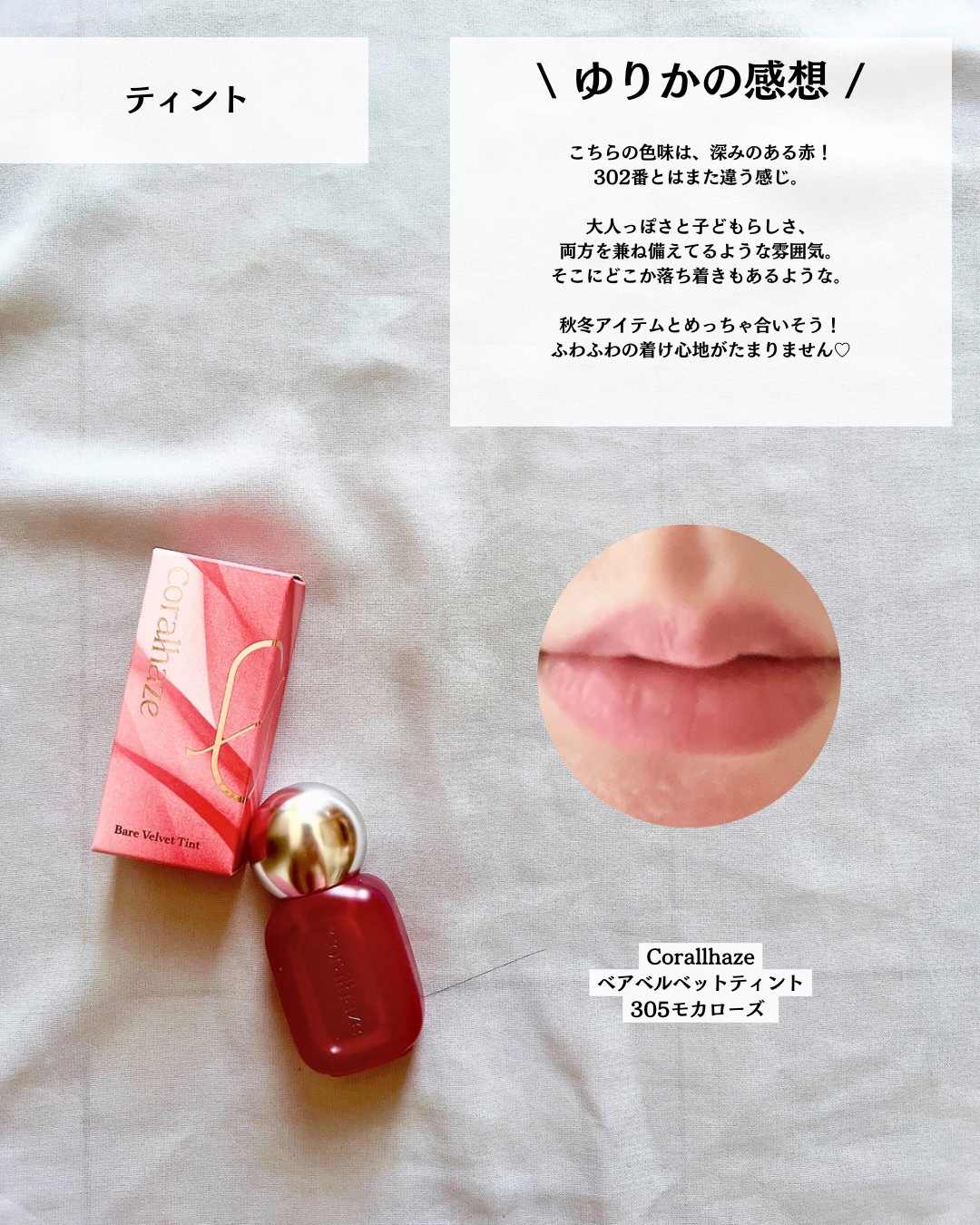 #PRCoralhaze@coralhaze_jpベアベルベットティント新発売のベアベルベットティントはリップとしてはもちろんオーバーリップのベースやチークにも使えるマルチユースティント✨️見たまま発色、ふんわり質感でぼかしやすいからグラデリ...