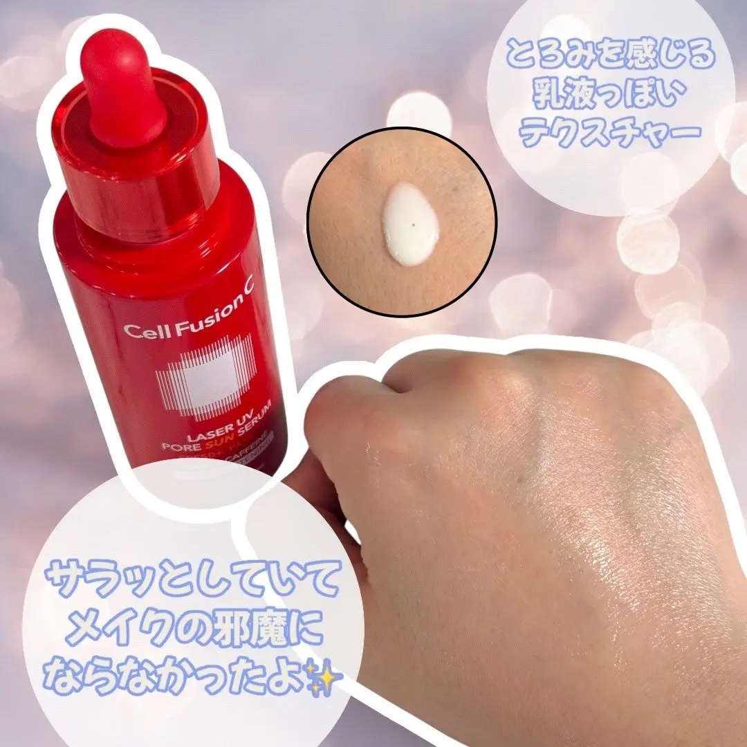 #PRセルフュージョンC(@Cellfusionc_jp)より商品提供いただきました🎵アンバサダー投稿になります!☀️レーザーUVポアサンセラム40ml普段のメイク前に取り入れてます😄セラムなのにSPF50+PA++++でUVケアが出来るのが...