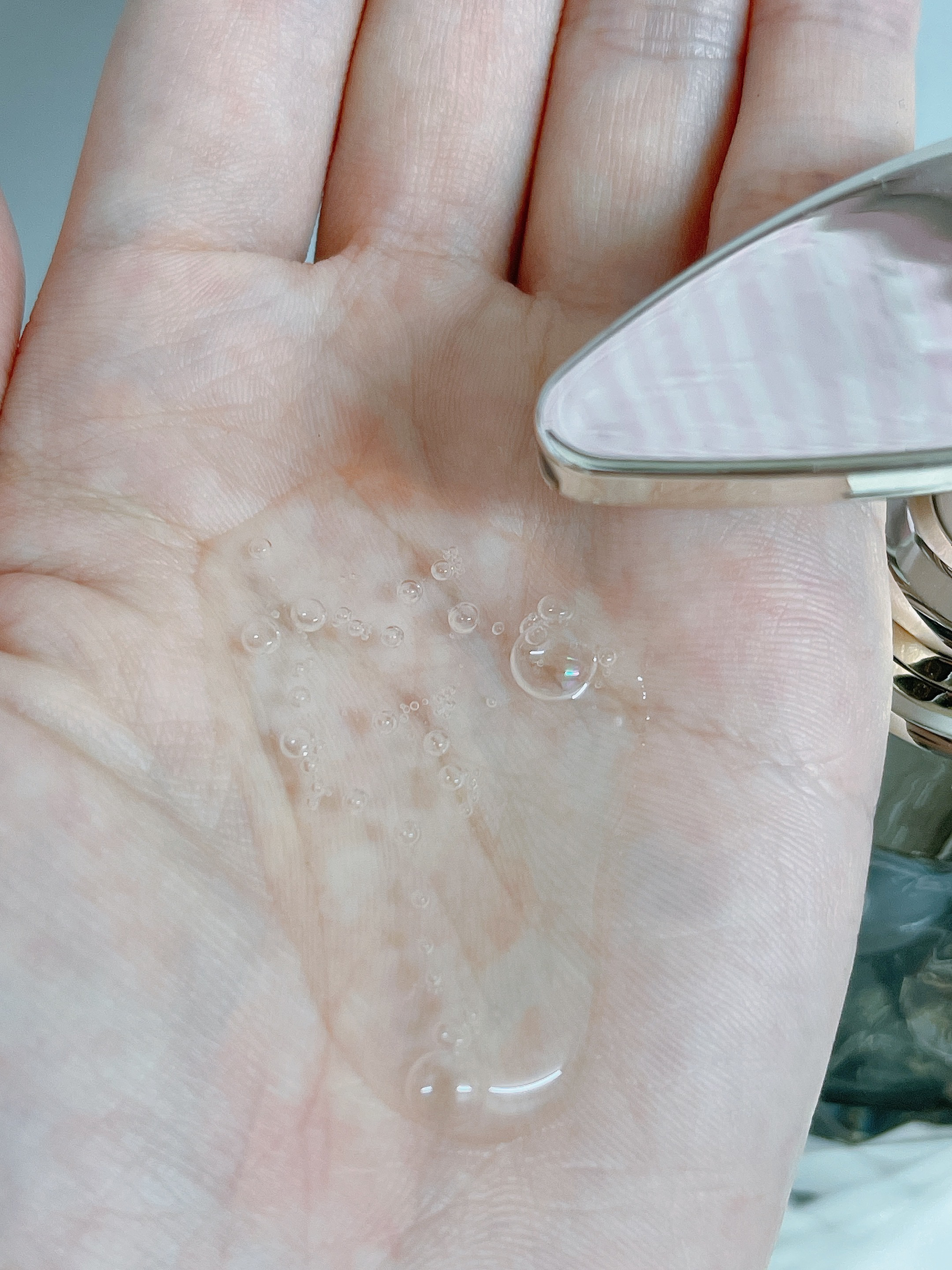 ピンク色のセラムがとても可愛いです! 自動のスポイトってどんなだろう…?とドキドキしながら使ってみました。 一般的な美容液のようにくるくると回して開けると、1番上の部分がポコッと飛び出します。 美容液を使ったあとは普通にくるくると回して戻すと上部の凸は平らに引っ込みます。 ただ私個人的には1スポイトの量が少なく感じたので、2スポイト分使用しています。 スポイト部分を押して美容液を吸い上げる動作がない分楽なのですが、2回ボトルを開け閉めしないといけないので手間的にはあまり変わらないかも。 テクスチャーはとろっとしたジェルのようにも思えますが、伸ばすとすーっと広がり、ベタつきにくいみずみずしい感じの美容液です。 CICAやティーツリーの美容液なので他のスキンケアとも合わせやすいし、肌トラブルがある時にも使えるのでとても助かってます♡⃛