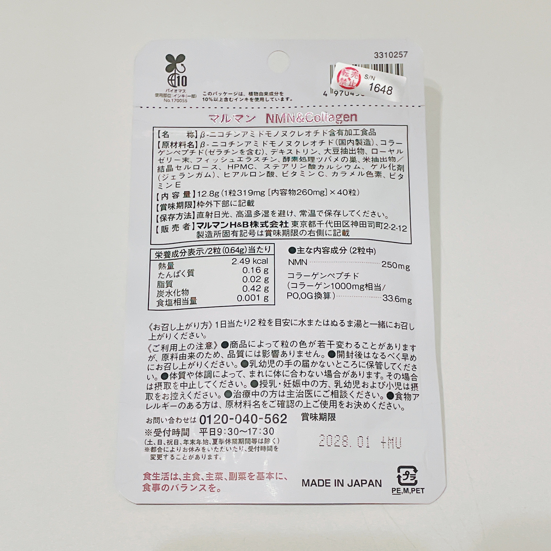 \次世代型サプリ/୨୧୨୧マルマンH&BNMN&Collagen40粒(20日分) ¥1,944円(税込)୨୧୨୧・注目成分【NMN】を1日目安250mg配合・NMN(ニコチンアミドモノヌクレオチド)・高濃度*タイプコラーゲン1,000mg相...