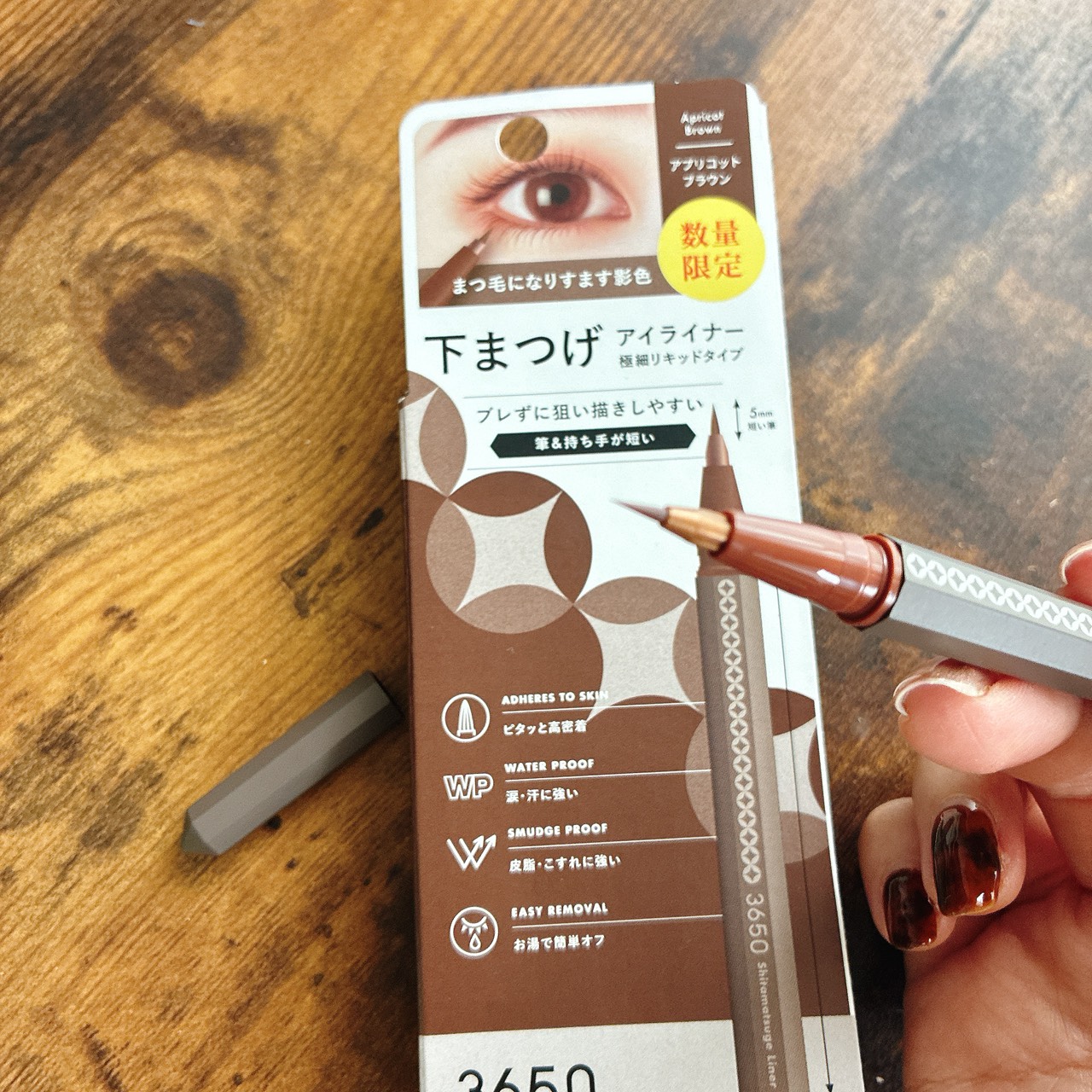描きやすさと色バリエの豊富さで人気!3650のアイライナーから下まつげ用が登場💓今回使ったのは赤浮きしない影っぽカラーが秋メイクにぴったりなアプリコットブラウン🥰鏡に近づいても軸を立てやすいショート軸と下まつげの隙間にフィットするシ...
