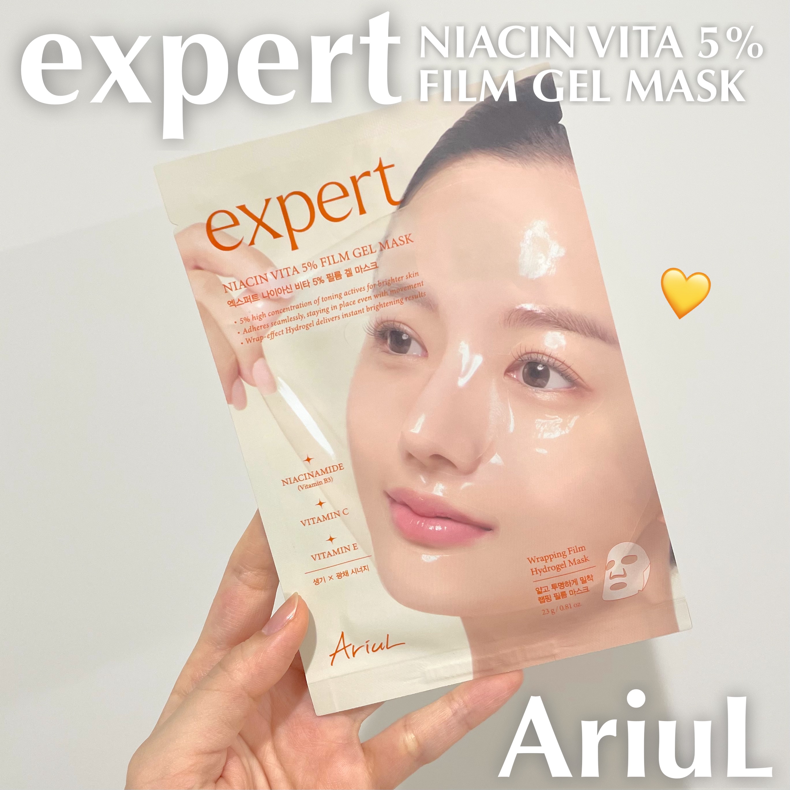 AriuL-アリウル-様の「エキスパートナイアシンビタ5%フィルムゲルマスク」\新感覚!フィルムゲルマスク✨/例えるならラップのように薄い(0.3mm)の超密着・超薄型のゲルマスクです❣️こんなに薄いゲルマスクって初めてで「おおっ😳」と思わず...