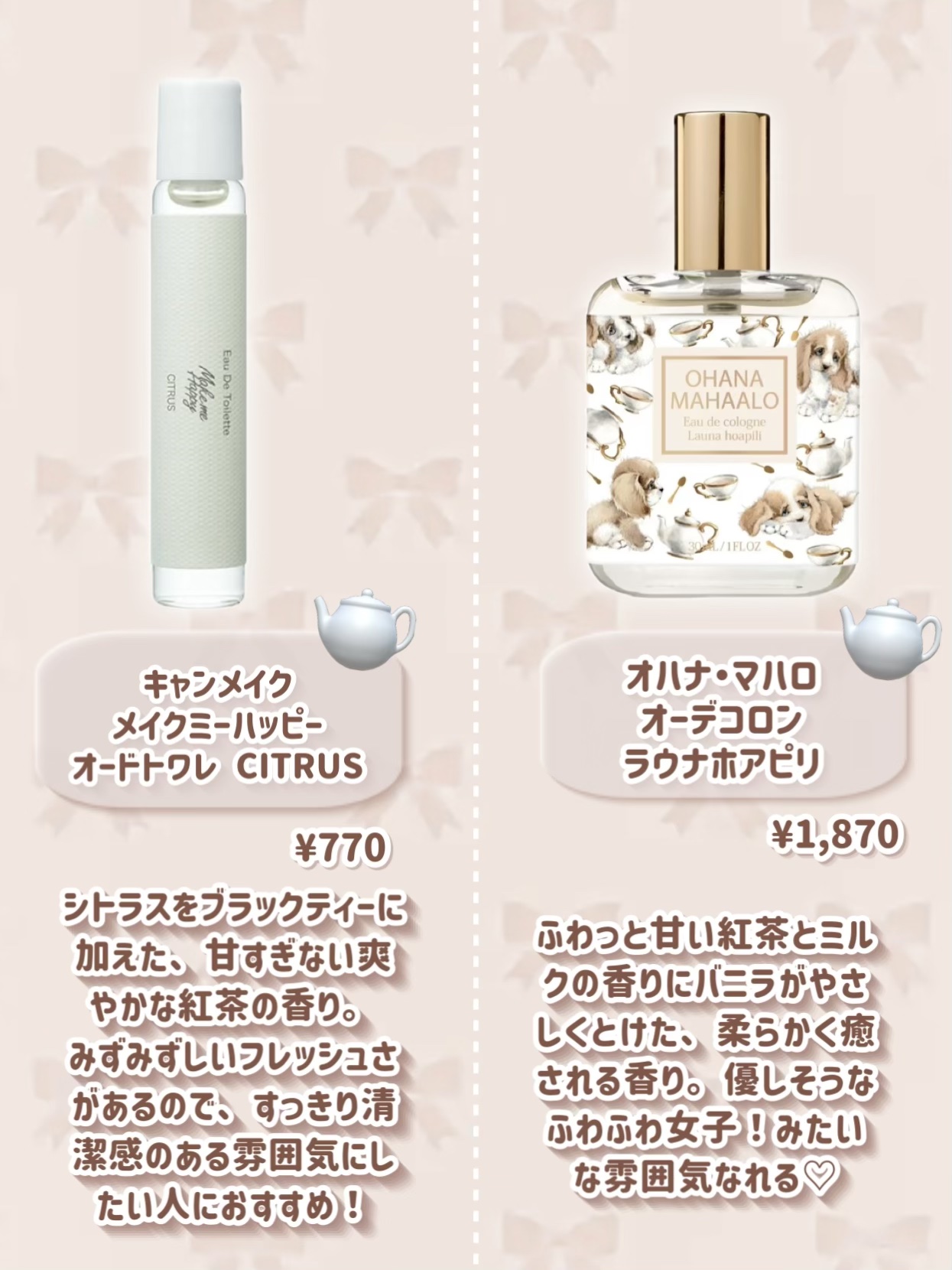 | 香水ランキング第79位 | リアルなミルクティーの香りがとっても好み! 甘いミルクとさわやかな紅茶のバランスがとても良くお気に入りです♡ | 詳細を見る |