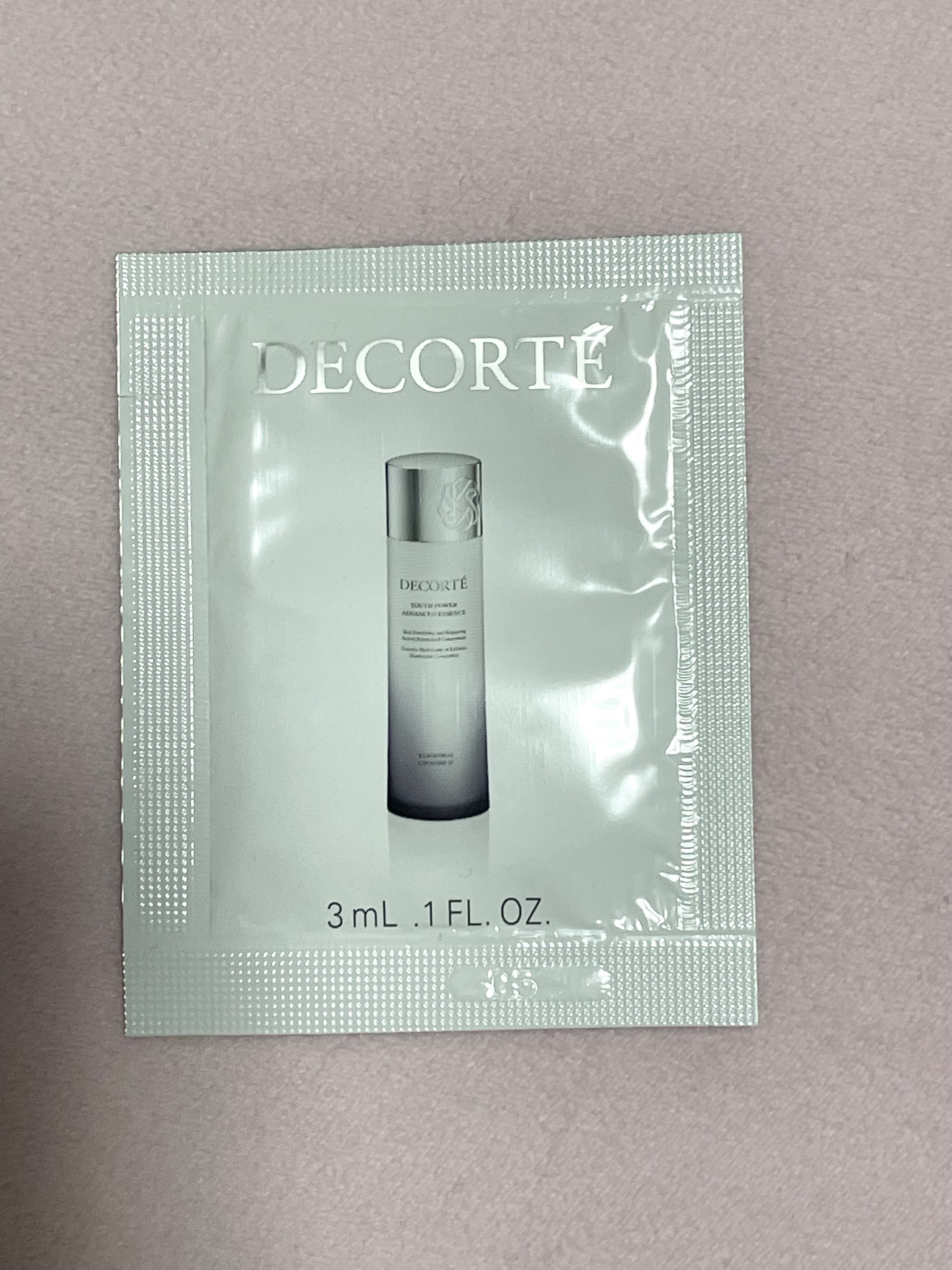 DECORTÉユースパワーエッセンスローション試供品3ml(¥16500/150ml)液はサラッとしているけれど重みがある気がします。肌に乗せるとヌルッと肌に馴染んでいく感じがします。私は1袋を5回ほどで使い切りました。次の日、肌を触るとスベ...