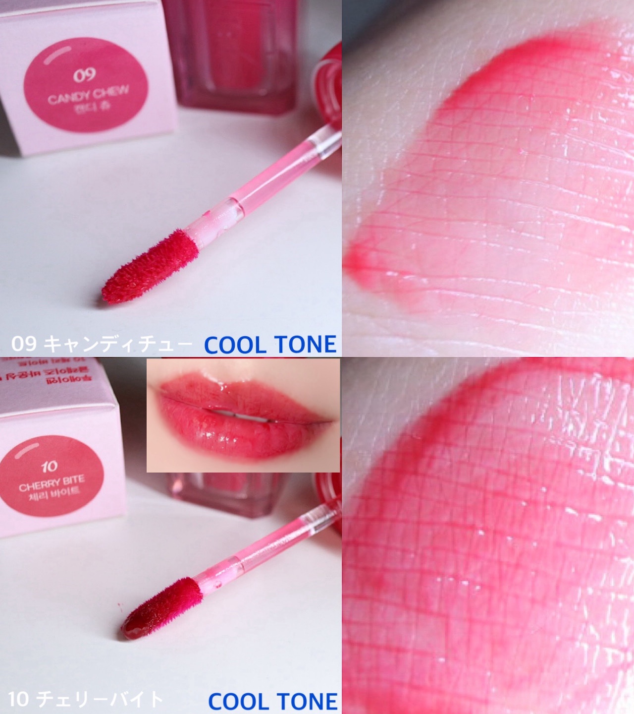- ほんのりプランピング効果で痛くないぷっくりティント。 もっちりなのに嫌なべたつきがなく使いやすい。 縦ジワがなくなる綺麗な唇を~! ひと塗りで輝く、 澄んだ透明感あふれるぷるんとしたキャンディツヤ🍭 ティントにグロスの長所をプラスしたテクスチャーで、 ベタつかず長時間続く光沢を ✧˖*°࿐