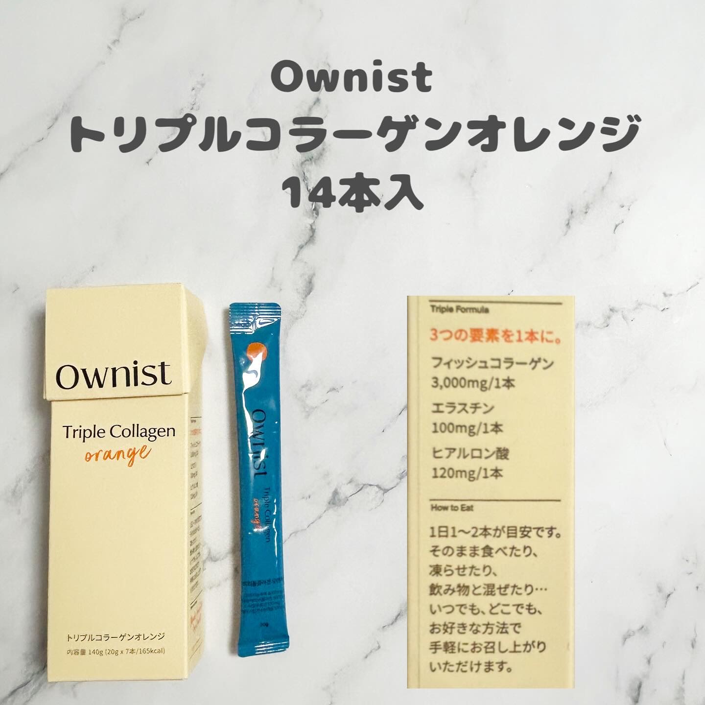 Ownist(オニスト)甘味料不使用、オーガニックの自然なおいしさ!✨食べやすく、持ち歩きしやすいスティック形状のドリンク&ゼリー✔️トリプルコラーゲンオレンジ☑︎肌の真皮3要素コラーゲン、エラスチンヒアルロン酸配合!ハリのある肌に☑︎1日1...