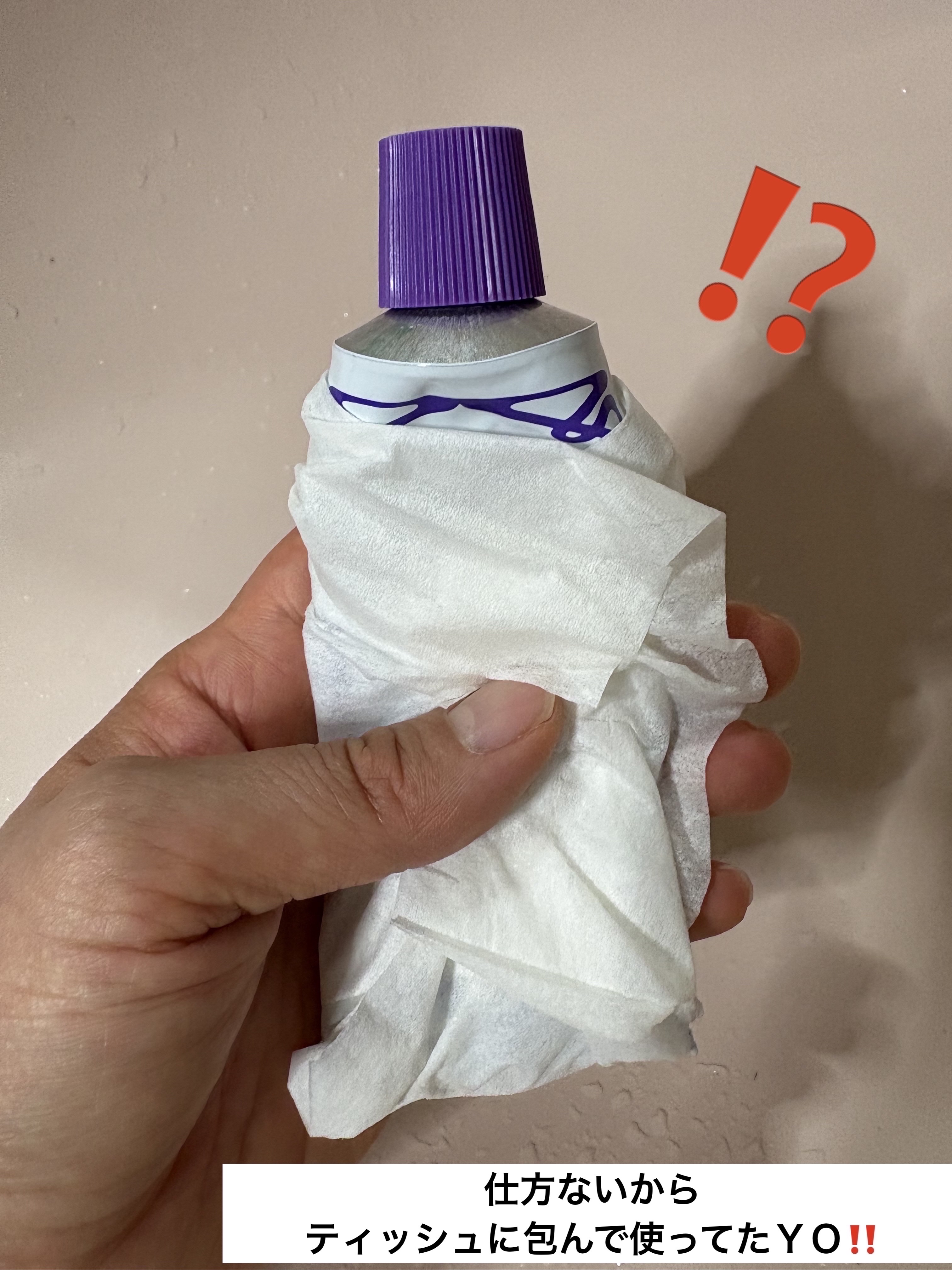 アルミのチューブタイプのパケ 中身は紫のテクスチャーが固めの歯磨き粉 かなり強い湿布の匂いがする スースーすぎる歯磨き粉が大の苦手で、このホワイトニングパープルコレクター歯磨き粉がスースーするし、湿布の味が口の中にでてくるのが😭