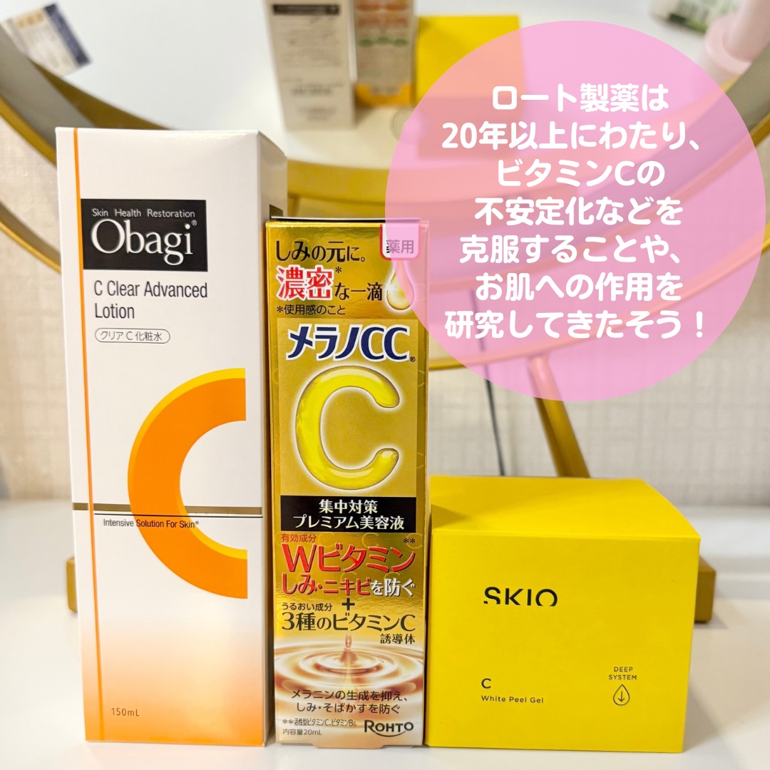 LemonSquareを通じて、メラノCC/オバジ/SKIOから、メラノCC薬用しみ集中対策プレミアム美容液/オバジCクリアアドバンスドローション/SKIOVCホワイトピールゲルをいただきました。ビタミンC研究20年越え!ロート製薬の知見が詰...
