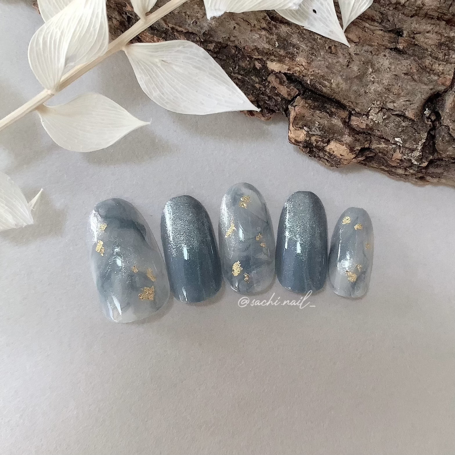 ワンカラーでも指ごとに色を変えるだけでオシャレに見えます💕 画像のようにゴールドラインとストーンを少し足すだけで華やかさがアップ🥰 何度かご紹介したことのあるスポンジで作るグラデーションです✨ スポンジを使うことで境目が綺麗に馴染んでくれます💕 アルミホイルの上でブラウンとトップコートを1:1くらいで混ぜたものを、トップコートのハケに取って3箇所に塗るだけ👌 事前に混ぜたものを塗ることで、爪の上でぼかすより簡単に出来ます💕 ベースカラーが乾く前に点置きしてぼかすことで綺麗にぼかせます✨ スピードが大事なので、使うポリッシュのキャップは全て開けておきましょう😊 天然石のラインはガタガタの方がより天然石っぽく見えるので、ラインを描くのが苦手な方でも大丈夫🙆♀️ 難しそうに見えて、やってみると意外と簡単に出来ます♡