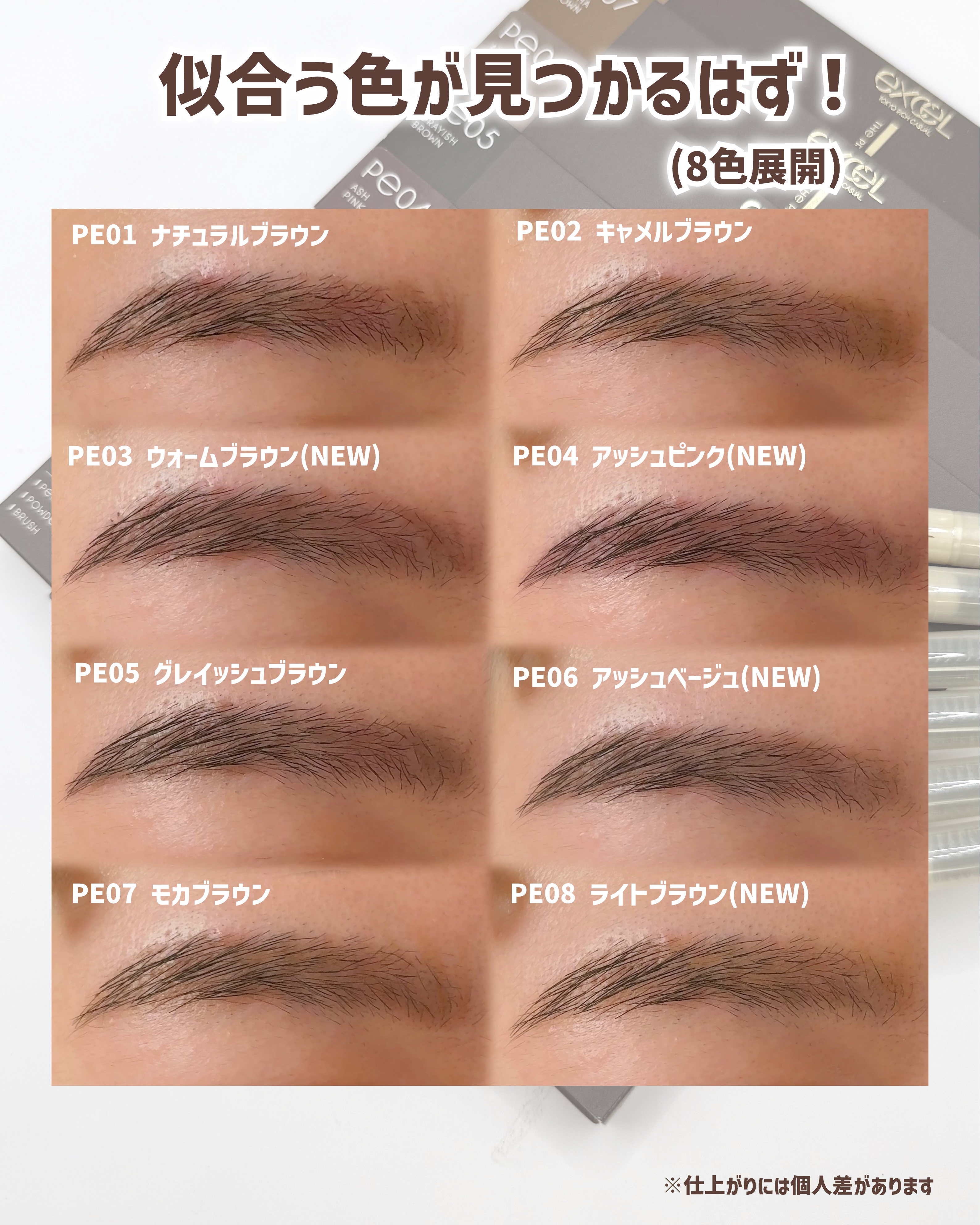- リニューアル発売 1本で洗練された美しい眉へ ペンシル・パウダー・ブラシの3機能一体型アイブロウ 1 なめらかな描き心地と自然な仕上がりを追求。作り込んだような美しい洗練眉に。 ●ペンシル 隙間埋めや繊細ラインも自在に描ける楕円芯。眉尻まで1本1本細く描き足せます。 \パワーアップポイント/ ・なめらかさアップ!抜群の描き心地を叶えました。さらにウォータープルーフ処方に。 ●パウダー 濃淡がつけやすいナチュラルフィットパウダー。微細パールinで立体感を演出します。 \パワーアップポイント/ 新処方でふんわり感アップ!より自然に仕上がります。 ●ブラシ とかせてぼかせる立体スクリューブラシ。コシと肌あたりのやさしさを両立した使い心地です。 \パワーアップポイント/ コシを柔らかくし、肌あたり・使い心地アップ!よりぼかしやすくなりました。 ・さらに落ちにくくパワーアップ!美しい仕上がりが長時間つづきます。 ・毎日のメイクに嬉しい美容液成分 in ◆2025年10月14日よりエクセル公式オンラインショップ及び Amazon にて先行販売