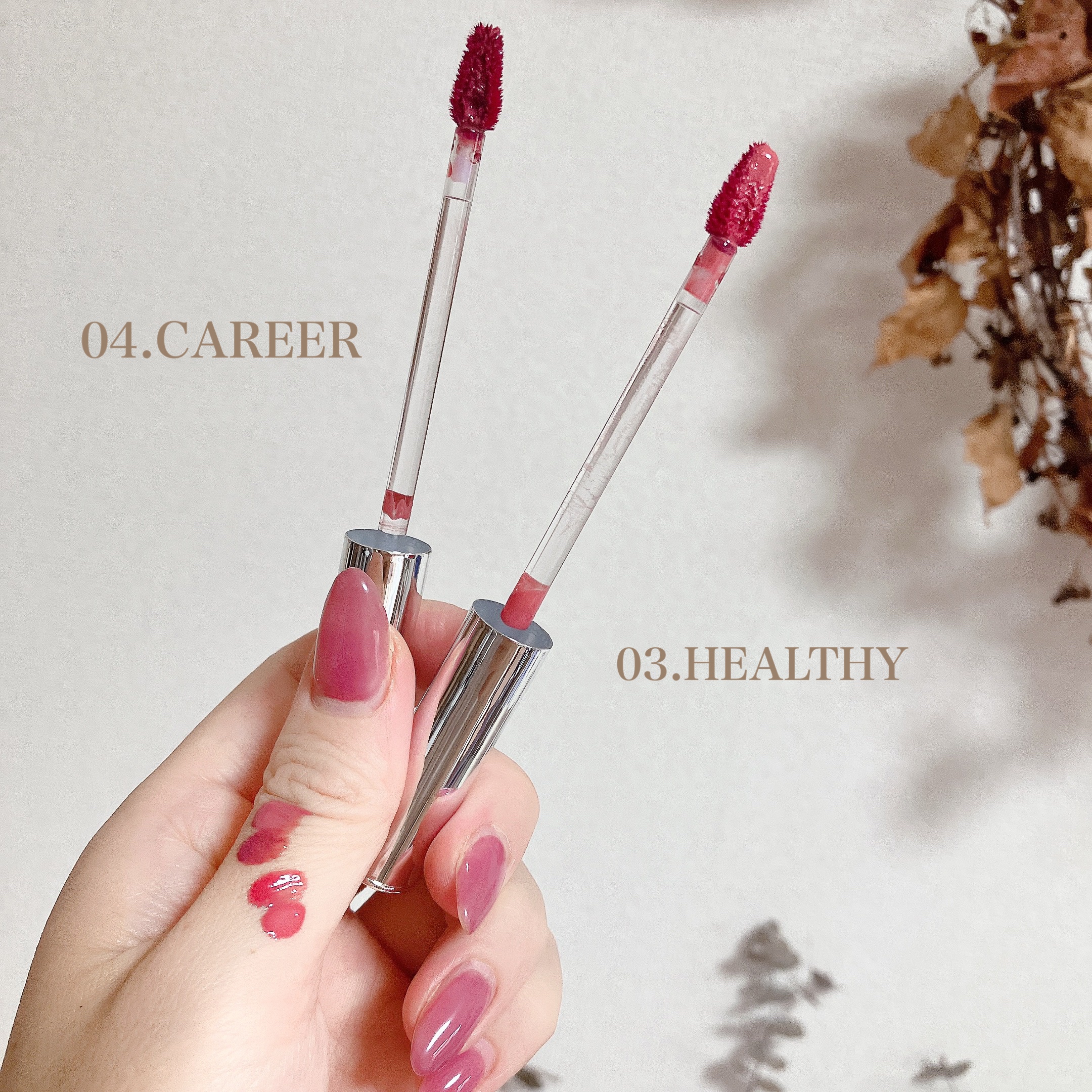 - みずみずしいウォーターテクスチャーのティント。万年筆をモチーフにした「ペン型ティント」でユニークなデザイン。 全10色展開。透明に発色するカラーとしっとりした水分膜が特徴。