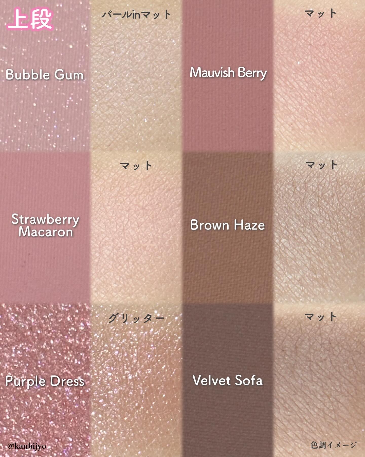 - 軽やかテクスチャーが目元に密着し、抜け感のある色使いが楽しめるデイリーパレット <101 ローズダイアリー(ROSE DIARY)> オーナメントを飾り付けたローズツリーのようにほのかに輝くウォームローズピンクカラー(イエベ秋)。 <102 ミュートアーカイブ(MUTE ARCHIVE)> 少女たちのピンキーなホームパーティームードを盛り込んだクールでヌーディーなミューテッドモブカラー(ブルべ夏ミュート)。 <103 バニラヘイズ(VANILLA HAZE)> 焼きたてのジンジャークッキーのように暖かく香ばしいウォームミュートカラー(イエベ秋ミュート)。 <104 GHR ピンク(GYEONGHOERU FLOWER FESTIVAL)> 春の日の美しく優雅な色を詰め込んだピンクカラーパレット。イエベ春&ブルベ夏におすすめのパレットです。 <105 DSG バイオレット(DEOKSUGUNG STONE WALL ROAD)> ほんのりピンクがかった柔らかなモーブカラーパレット。ブルベ夏&ブルベ冬におすすめのパレットです。 <106 DBG コーラル(GYEONGBOKGUNG STROLL)> 明るい日差しの色を取り入れたデイリーなコーラルカラー。イエベ春&ブライト秋におすすめのパレットです。