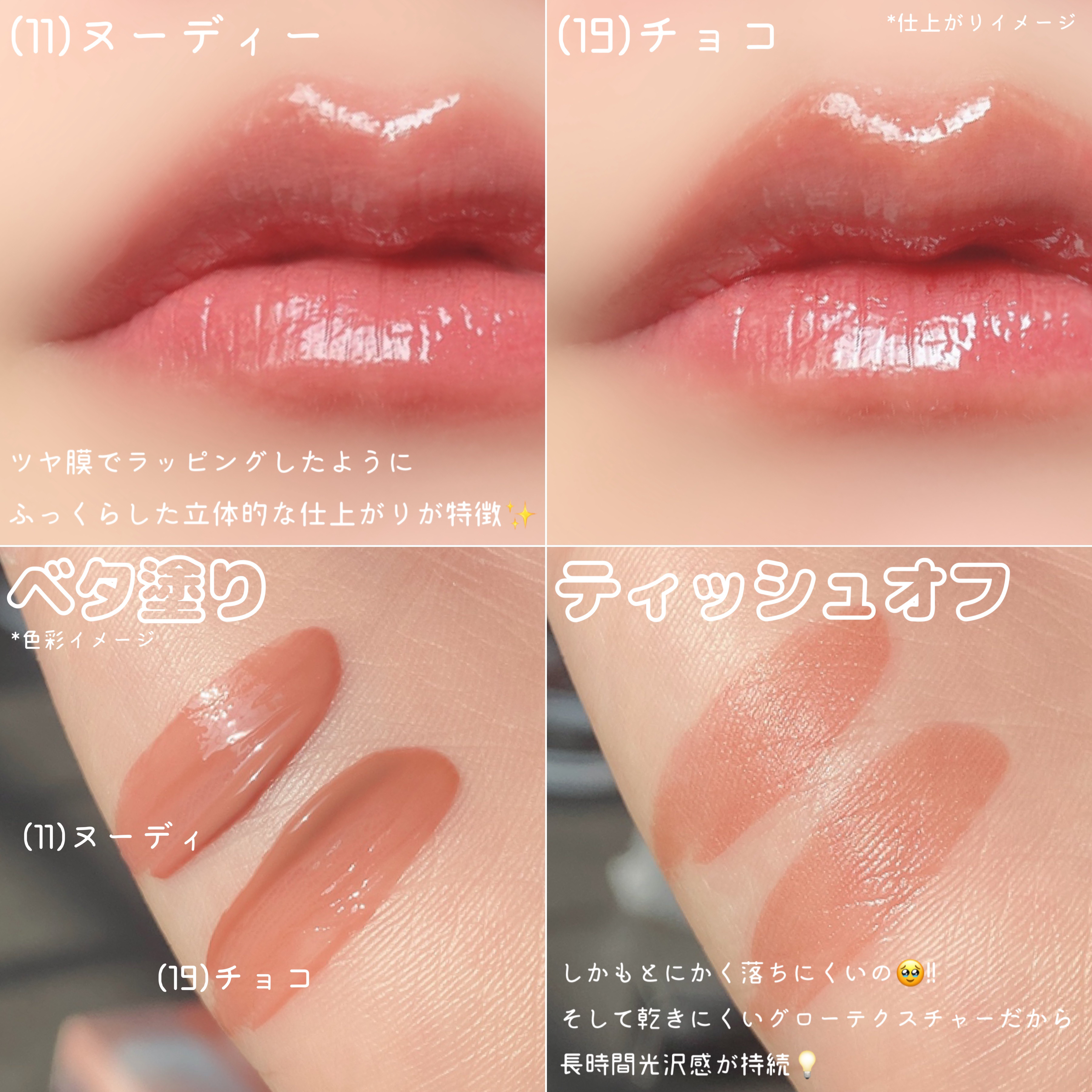 | ベタつかない軽いテクスチャーで、 体温でなめらかに溶けてツヤツヤでぷっくりとした唇に✨ | 詳細を見る | ||