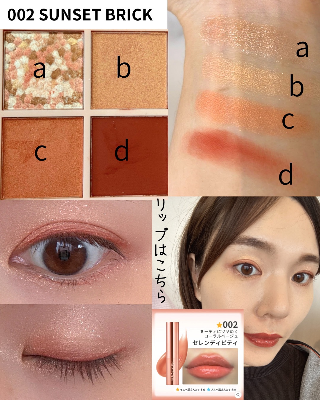 - 透け感カラーに、キラめきレイヤードをプラス #質感ミックス アイシャドウ 1. 4つの異なる質感をミックス マット・サテン・パール・グリッター、4つの質感が楽しめるマルチパレット 2.透け感そのまま!キラめきのレイヤード 重ねても、キレイにキラめく透け感カラーで、澄んだ奥行きのある目元に 3.ふわっとエアリー、なのに高密着 キメの細かな微粒子パウダーがふわっとフィット。軽いのに、しっかり密着 ■001 グレイジング ブラウン 肌にとけ込むシックなグラデ ニュアンス ベージュ ■002 サンセット ブリック マットとキラメキで旬顔! スモーキー テラコッタ ■003 ヴィンテージ ローズ 甘さおさえめでオトナっぽい ボルドー ピンク ■004 ロージー ブラウン 上品に盛れる! ローズ ブラウン ■005 ダスティ モーヴ 繊細なニュアンスを秘めた グレージュモーブ ■006 サファリ シマー 印象深いまなざしの カーキグリーン ■007 ジュエル ムーン ほんのり甘めのキラめき プラムピンク ■008 カシミア ヌード 上質なカシミアを纏ったような ウォームベージュ ■013 ローズ ラスター クールなまなざし グレイッシュローズ ■015 コズミック スター 幻想的な煌めき ブロンズピンク