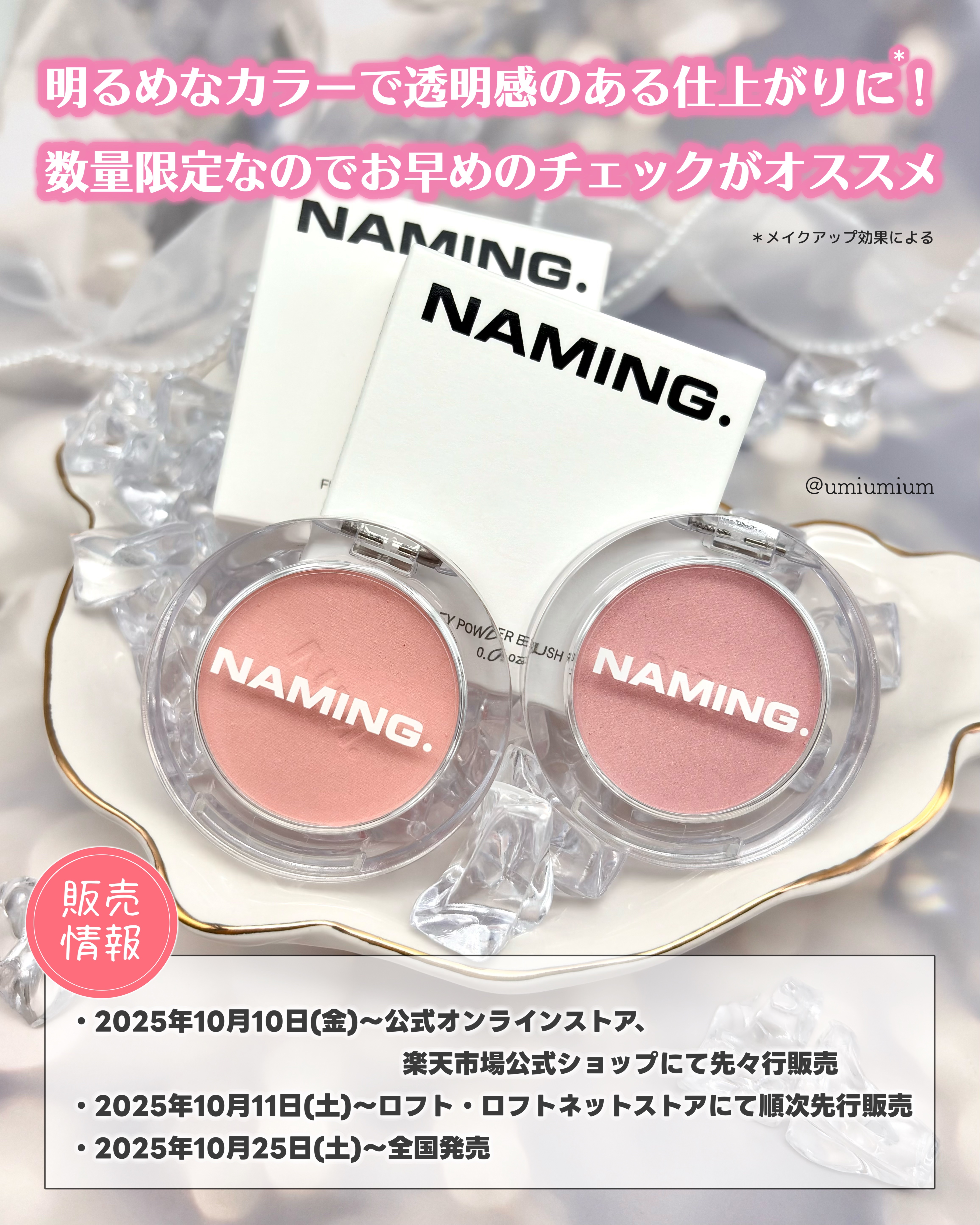 ゴールドパールがとっても綺麗ですね✨namingのチーク大好きなので今回の新作も気になります💕
