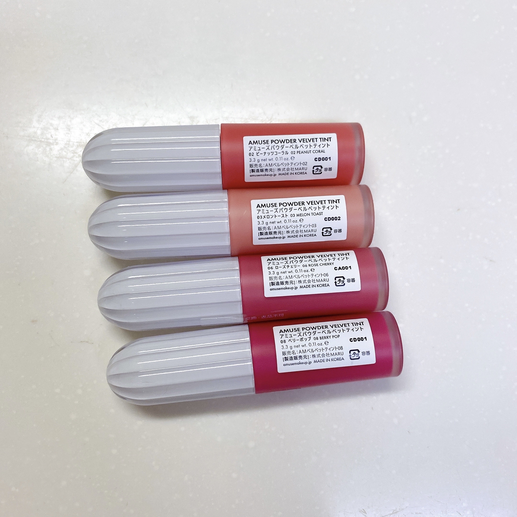 なめらかなプライマー効果と塗った瞬間ぽってりプランピングされる新概念パウダーベルベットティント。 マットリップのイメージを覆すなめらかな仕上がり。ふんわりほわっとした仕上がりながら乾燥せず縦じわも出来にくいので感動✨ 絶妙ピンクのラインナップで可愛くてずっと見てられるパッケージ🩷