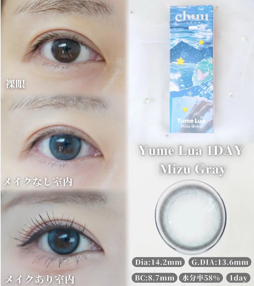 ・chuulens@chuulens_japan@chuulens_harajukuYumeLua1DAY◎MizuGray(ミズグレー)୨୧୨୧日本限定発売🩵水の光のようなグレーカラコンBilllieツキちゃんがミューズモデル🫰🏻チューレン...