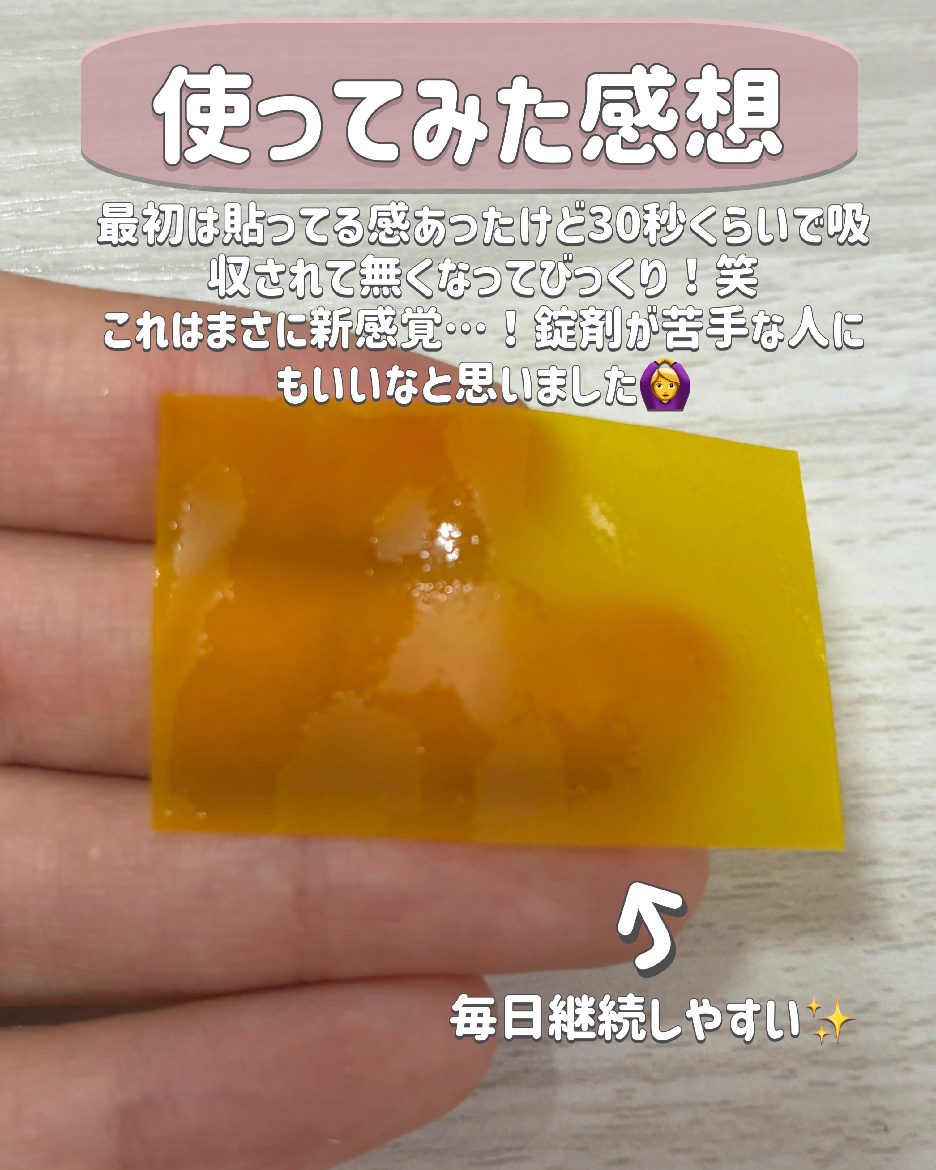 | サプリメントランキング第118位 | 薄っぺらい黄色いフィルムを口を開けて 上の方に貼るだけ😚 味は、酸っぱくてレモン🍋味で美味しい♡ | 詳細を見る | |
