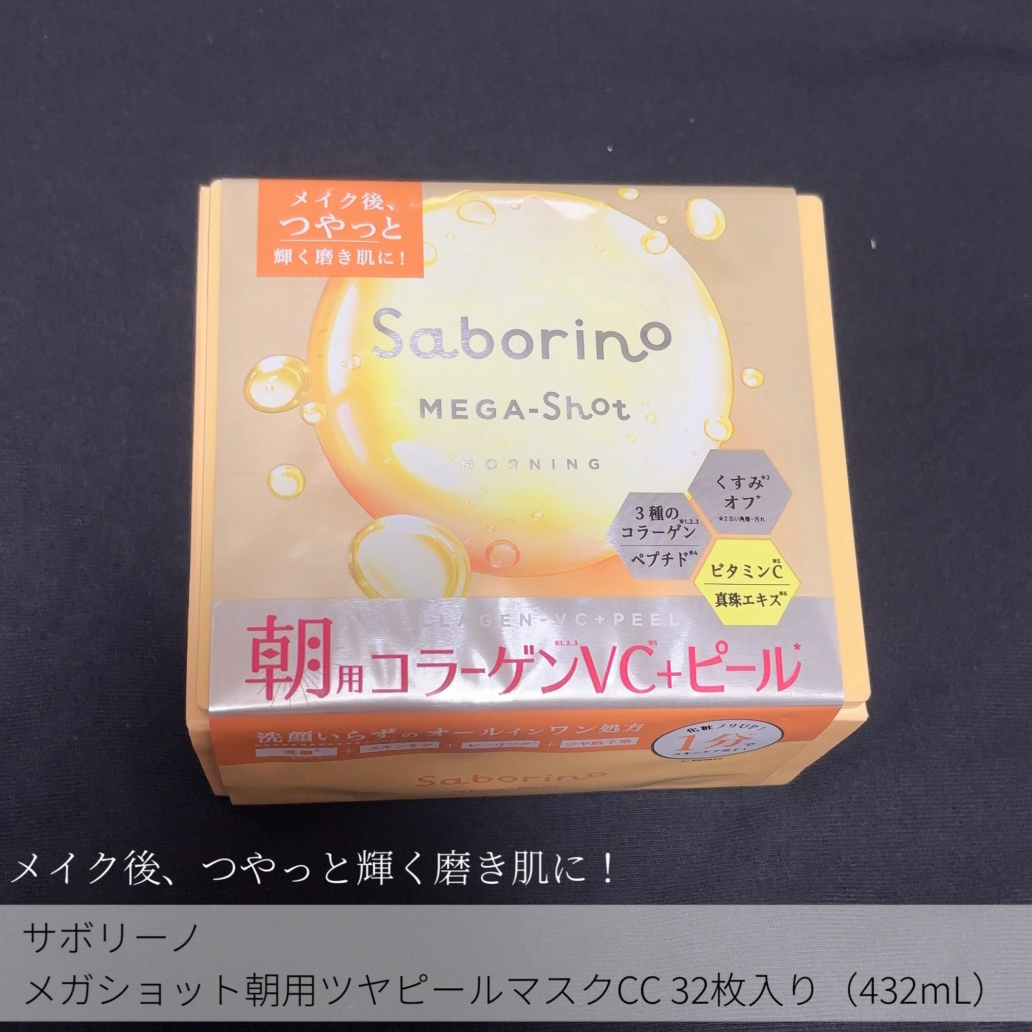 サボリーノメガショット朝用ツヤピールマスクCC¥1,980メガショット夜用白玉美容マスク¥2,310各32枚入り朝用ツヤピールマスクCC忙しい朝に時短でお肌整います!3種のコラーゲンとビタミンC、10種のペプチド配合できゅっと引きしめ、ハリの...