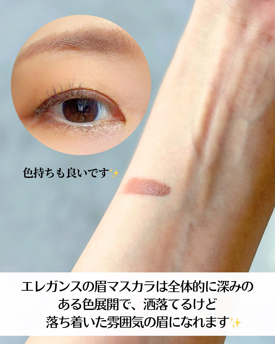 エレガンスのコスメを5500円以上購入でもらえます!! ミニサイズですが、想像以上に作りがしっかりしてる✨ 旅行の時はできるだけコンパクトにしたいのでミニコスメを集めているのですが、アイブロウのミニは初めて!♡ WN50はピンクブラウンで抜け感を出してくれます♡ 脱色したかのようにしっかりと発色してくれて、落ちにくいです🫧 エレガンスの商品はパケもかわいく、使っていると気分が上がります🎀