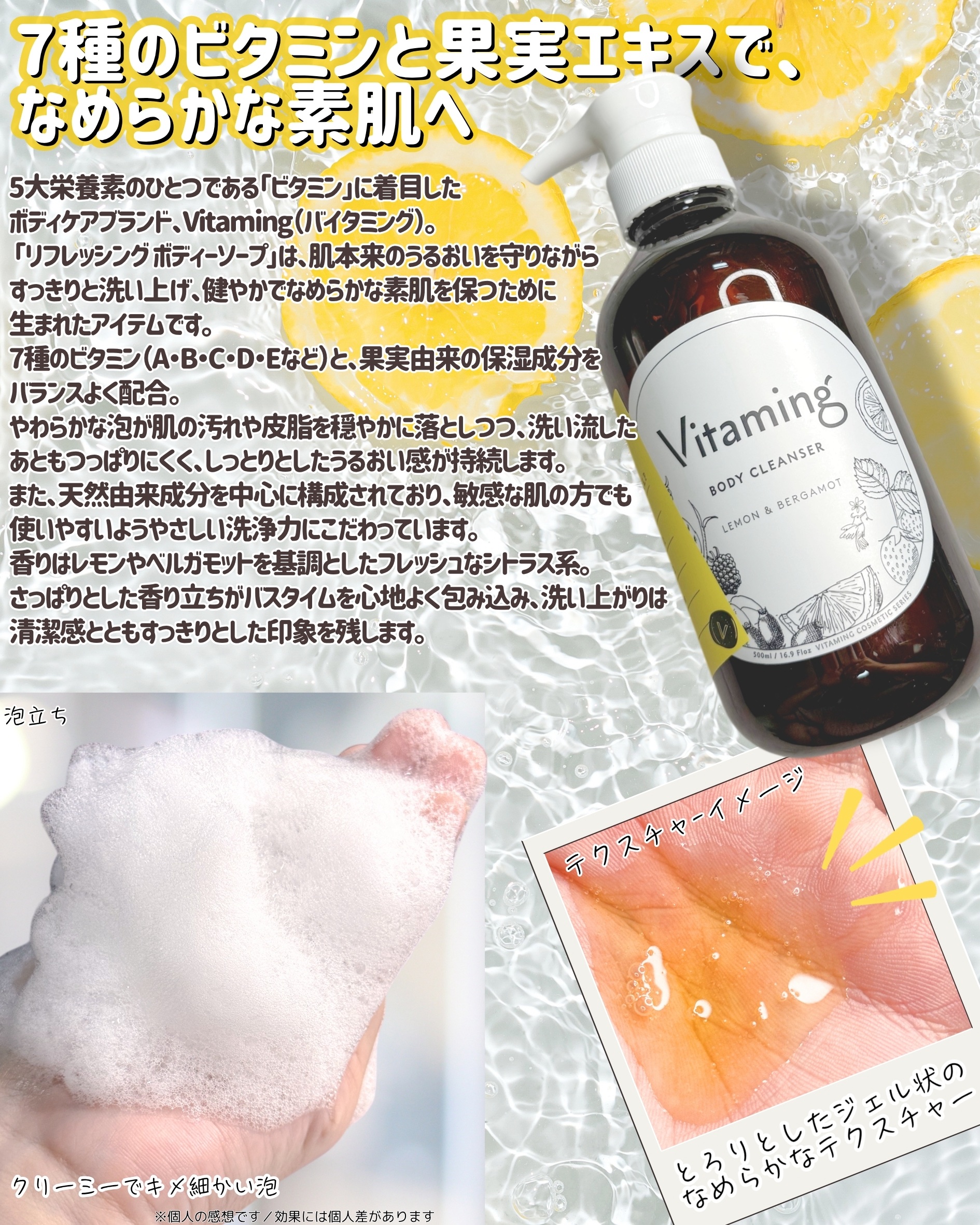 商品詳細情報Vitaming リフレッシングボディソープ(レモン&ベルガモットの香り)