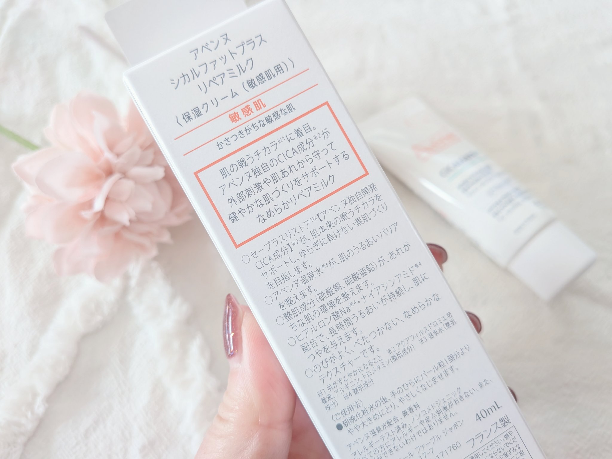 - 肌の治安*1を守るアベンヌCICA 肌あれ因子を科学して、ゆるぎないなめらか美肌へ 肌の戦うチカラ*1に着目。 アベンヌ独自のCICA成分*2が乾燥などの外部刺激から守って、肌あれを防ぎ、 健やかな肌環境をサポートするなめらかリペアミルク 〇セープラスリストアTM【アベンヌ独自開発CICA成分】*2が、肌本来の戦うチカラをサポートし、ゆらぎに負けない素肌環境を目指します。 〇アベンヌ温泉水*3が、肌のうるおいバリアを守ります。 〇整肌成分(硫酸銅、硫酸亜鉛)が、あれがちな肌の環境をサポートします。 〇ヒアルロン酸Na※4・ナイアシンアミド*4配合で、長時間うるおいが持続し、肌につやを与えます。 〇のびがよく、べたつかない、なめらかなテクスチャーです。 *1 肌を健やかに保つこと *2 アクアフィルスドロミエ培養液、アルギニン、トロメタミン(整肌成分) *3 温泉水(整肌成分) *4 整肌成分