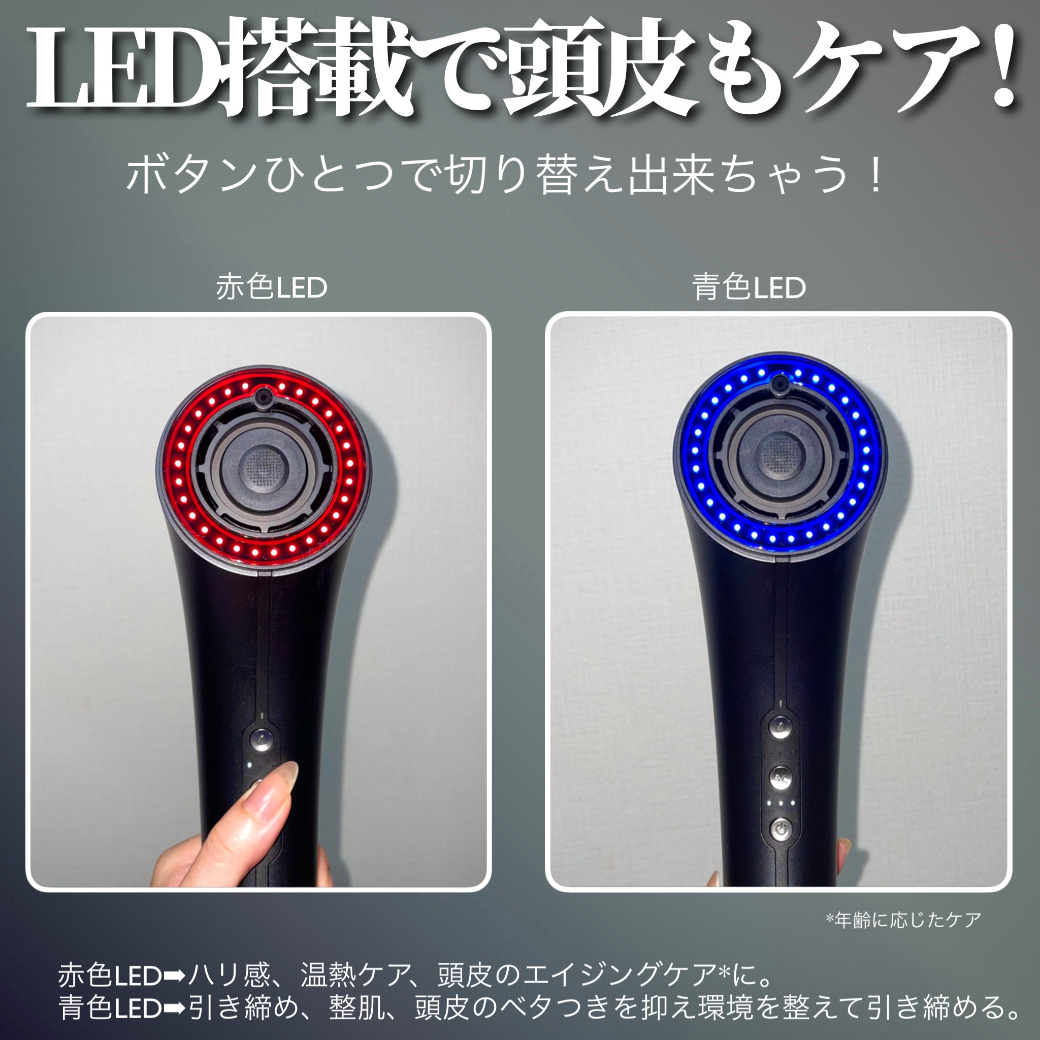 - ■ナノ化されたミストで髪の深部までうるおいケア 粒子サイズを1μm(0.001mm)前後にナノ化した美容液が、ドライヤーからミストとして噴射し髪に浸透します。ミストセラムに配合した髪の補修に優れた美髪成分(ヒアルロン酸*1、浸透型ケラチン*2、浸透型シルク*3等)が、髪の深層部にまでしっかり届くことで、髪本来の潤いを引き出し、毛先までしっとりとまとまりのある理想的な美髪を実現。乾かす時間を美容時間にアップデートします。 *1 ヒアルロン酸ナトリウム(補修) *2 加水分解ケラチン(補修) *3 加水分解シルク(補修) ■軽量なのに大風量でパワフル 約357g*1と軽量なボディでありながら、風量は驚くほどパワフル。超高速モーターと、飛行機のジェットエンジン機能を活かしたBrighte独自の技術で風路設計を最適化。2.58㎥/分*2という大風量で圧倒的な速乾を実現しました。 *1本体のみ *2自社測定、ブーストアタッチメント装着、3段風量(強)時 ■美髪テクノロジー搭載 ・すぐれた熱伝導性と電気伝導性を兼ね備えた「グラフェン」の遠赤外線 ヘッド部分の中央に、すぐれた熱伝導性と電気伝導性を兼ね備えた素材「グラフェン」を採用。 表面だけ乾燥した髪はうねりの原因に。 グラフェンが放出する遠赤外線により熱分散がより均一になり、髪の内側からやさしく乾かします。 生乾きすることなく乾かしすぎを防ぎ、最適な水分バランスを実現します。 ・デュアルイオンテクノロジー効果 プラスとマイナス両イオンを備えたBrighte 独自のデュアルイオンテクノロジーの相乗効果で、髪の毛一本一本をケア。 プラスイオンで髪の表面を整えながら、マイナスイオンで静電気を抑え髪のまとまりを向上させます。 ・頭皮にうれしいLEDテクノロジー 吹出口周辺には、エイジングケア*する赤色LEDと、頭皮のベタつきを抑え整肌する青色LEDを搭載し、髪だけでなく頭皮環境にもアプローチします。 *年齢に応じたケア