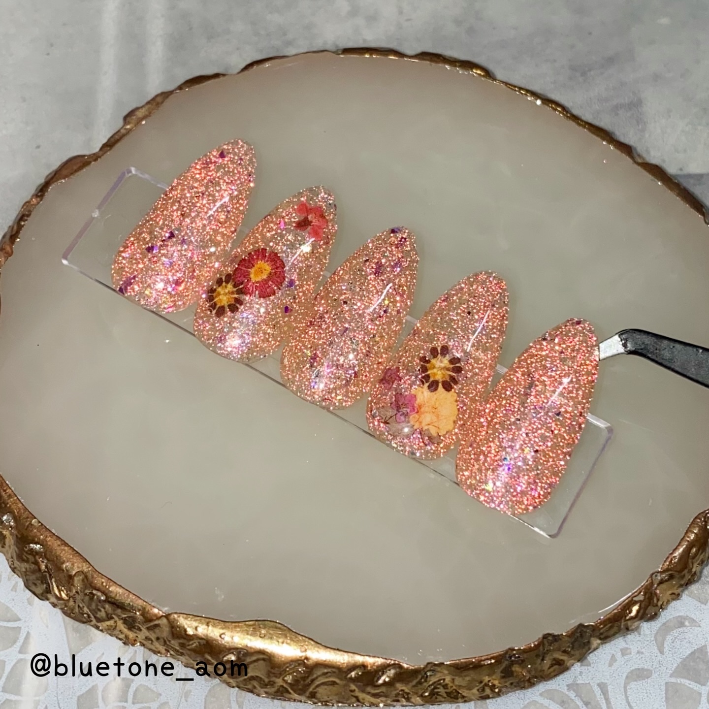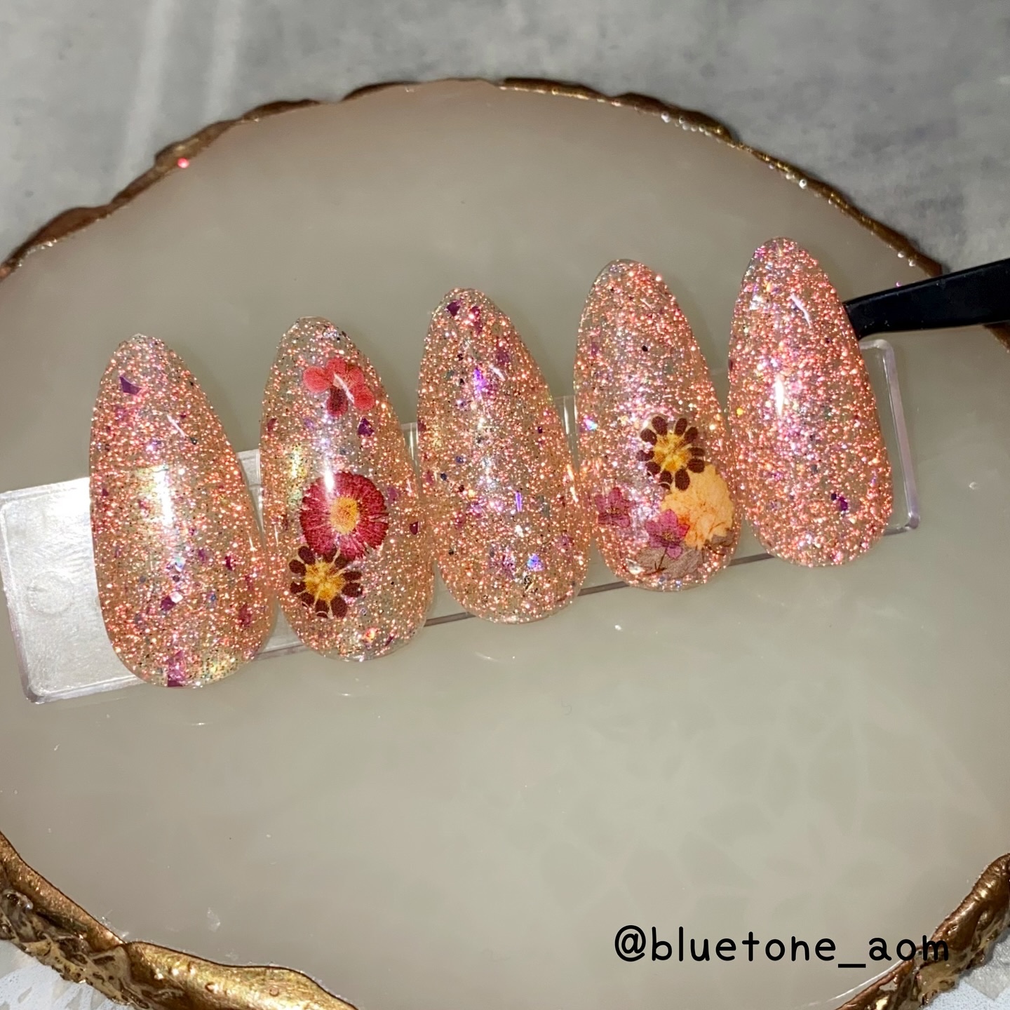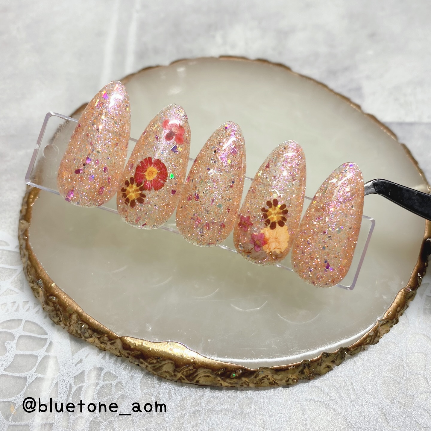 ラメがしっかりしてるし クリアカラーが入ってるから オーロラパウダー無しでも 充分キラキラしました! 反射強めのフィルムなので 実物はもっと うるうるとキラキラが強いです! ビー玉みたい🥺 ネイルシール長持ちさせたいけど ちょっと飽きてきたな〜って時とかに 全然違った印象になるのでオススメです! Seriaのベースジェル 本当にうるうるネイルしやすいので オススメしたい🙆♀️