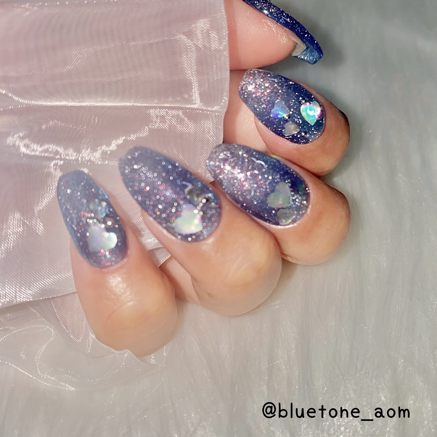 ラメがしっかりしてるし クリアカラーが入ってるから オーロラパウダー無しでも 充分キラキラしました! 反射強めのフィルムなので 実物はもっと うるうるとキラキラが強いです! ビー玉みたい🥺 ネイルシール長持ちさせたいけど ちょっと飽きてきたな〜って時とかに 全然違った印象になるのでオススメです! Seriaのベースジェル 本当にうるうるネイルしやすいので オススメしたい🙆♀️