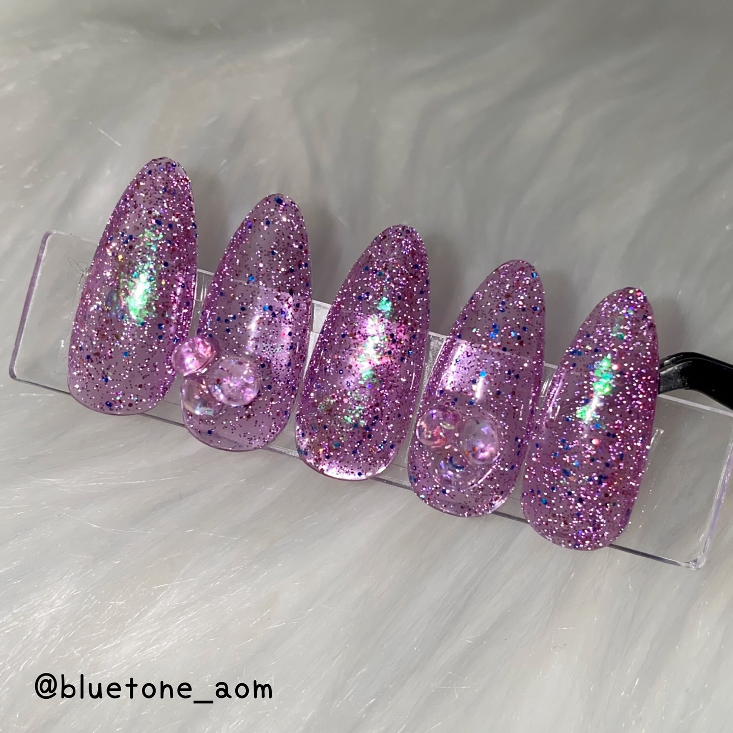 ラメがしっかりしてるし クリアカラーが入ってるから オーロラパウダー無しでも 充分キラキラしました! 反射強めのフィルムなので 実物はもっと うるうるとキラキラが強いです! ビー玉みたい🥺 ネイルシール長持ちさせたいけど ちょっと飽きてきたな〜って時とかに 全然違った印象になるのでオススメです! Seriaのベースジェル 本当にうるうるネイルしやすいので オススメしたい🙆♀️