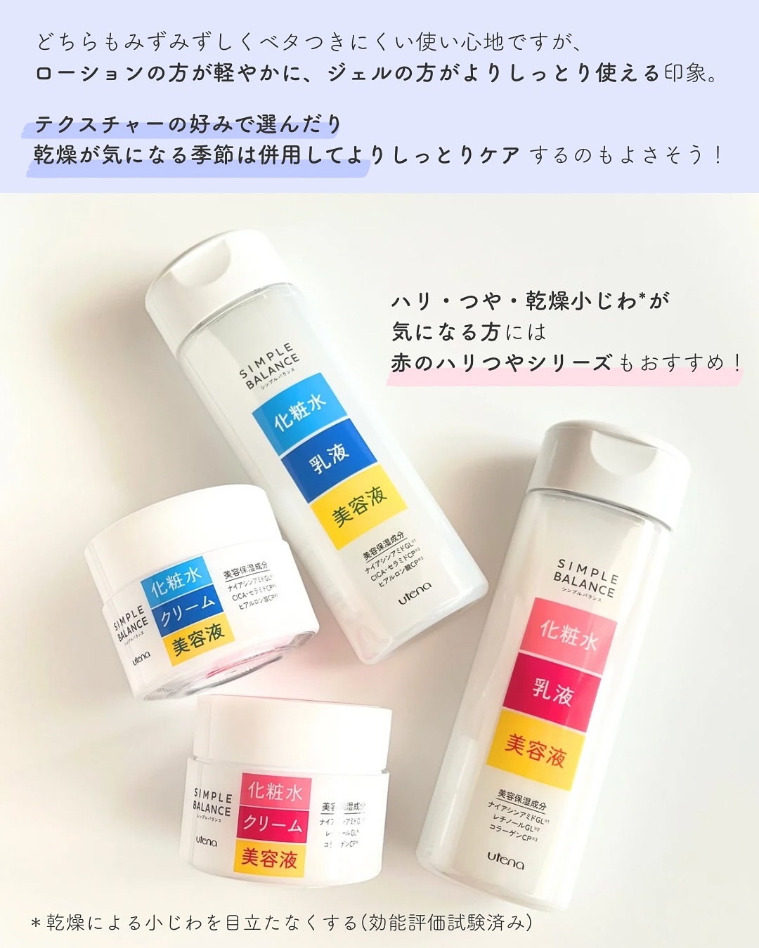 \大人肌に、しごできオールインワン/コスメラウンジの企画で、ウテナさんから商品を提供いただきました。■シンプルバランス・ハリつやローション 220mL880円(税込)・ハリつやジェル 100g1,100円(税込)ウテナから発売されているシンプ...