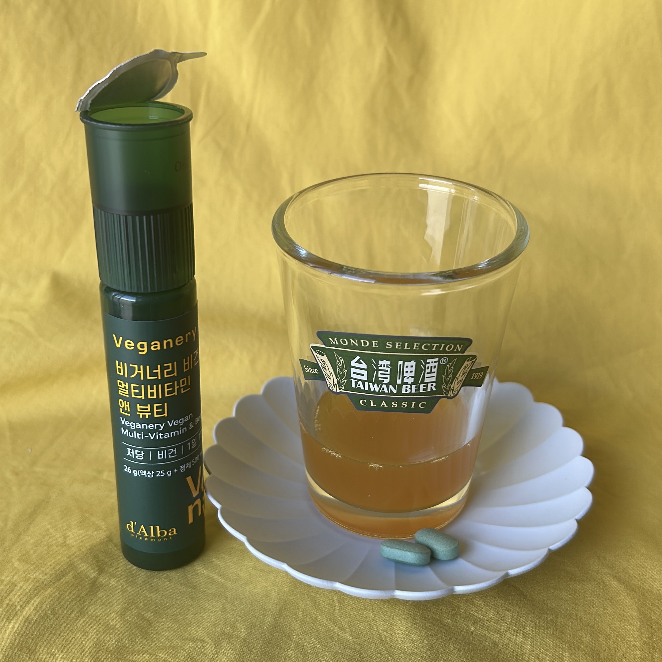 Veganeryヴィーガナリーマルチビタミン&ビューティ1日1本で手軽にエネルギーチャージ。体の中からビタミンやヒアルロン酸で栄養補給。肌の保湿管理ができる液状と粒状のオールインワンサプリ。容器の蓋の部分に入っている錠剤を下のアンプルと一緒に...