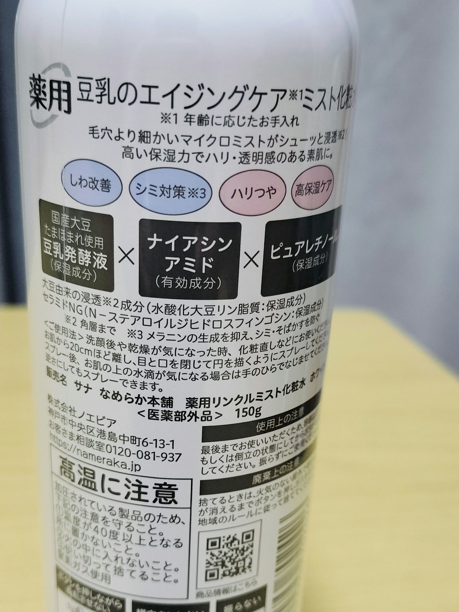 - ※2025年3月下旬より、一部処方変更に伴い、成分表記・販売名称の表記を、順次リニューアルいたします。(使用感に変更なし)尚、これにかかる商品の返品・交換は承っておりません。 【医薬部外品】 大人の乾燥へ速攻うるおいケア しわ改善・シミ対策*・高保湿のミスト化粧水登場 ①高保湿&エイジングケア※1アイテム 大豆「たまほまれ」を使用した豆乳発酵液※2、有効成分ナイアシンアミド、ピュアレチノール※2 、セラミドを配合。 ②超微細ミストで導入ケア! 毛穴より細かく、肌あたりのいいマイクロミスト。 大豆由来の浸透※3成分※4がお肌に必要な油分と水分の両方を引き付けながら浸透※3。 *メラニンの生成を抑え、シミ・そばかすを防ぐ ※1 年齢に応じたお手入れ ※2 保湿成分 ※3 角層まで ※4 水酸化大豆リン脂質(保湿成分) デザイン及び仕様は一部変更になる場合があります。
