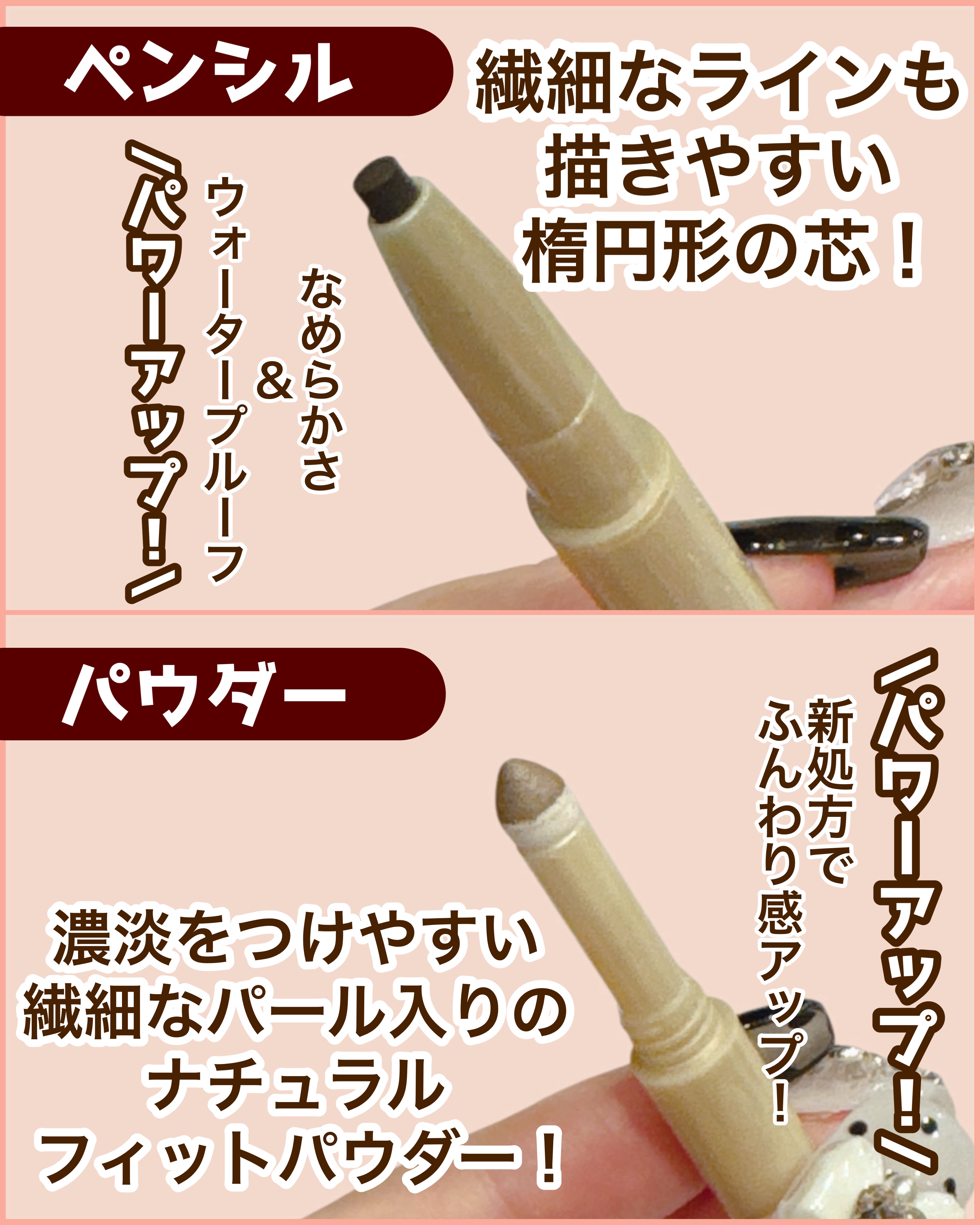 - リニューアル発売 1本で洗練された美しい眉へ ペンシル・パウダー・ブラシの3機能一体型アイブロウ 1 なめらかな描き心地と自然な仕上がりを追求。作り込んだような美しい洗練眉に。 ●ペンシル 隙間埋めや繊細ラインも自在に描ける楕円芯。眉尻まで1本1本細く描き足せます。 \パワーアップポイント/ ・なめらかさアップ!抜群の描き心地を叶えました。さらにウォータープルーフ処方に。 ●パウダー 濃淡がつけやすいナチュラルフィットパウダー。微細パールinで立体感を演出します。 \パワーアップポイント/ 新処方でふんわり感アップ!より自然に仕上がります。 ●ブラシ とかせてぼかせる立体スクリューブラシ。コシと肌あたりのやさしさを両立した使い心地です。 \パワーアップポイント/ コシを柔らかくし、肌あたり・使い心地アップ!よりぼかしやすくなりました。 ・さらに落ちにくくパワーアップ!美しい仕上がりが長時間つづきます。 ・毎日のメイクに嬉しい美容液成分 in ◆2025年10月14日よりエクセル公式オンラインショップ及び Amazon にて先行販売