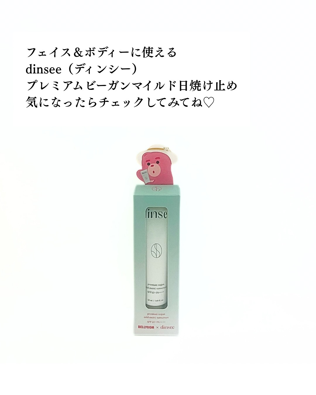 【#PR】dinseeプレミアムビーガンマイルド日焼け止めSPF50+PA++++オリヤンで1位を取ったビーガン認証を受けた日焼け止めです☀️ノンケミカルで紫外線吸収剤が入ってない日焼け止めだから肌に負担がなく使うことができます😌🤍済州の花エ...