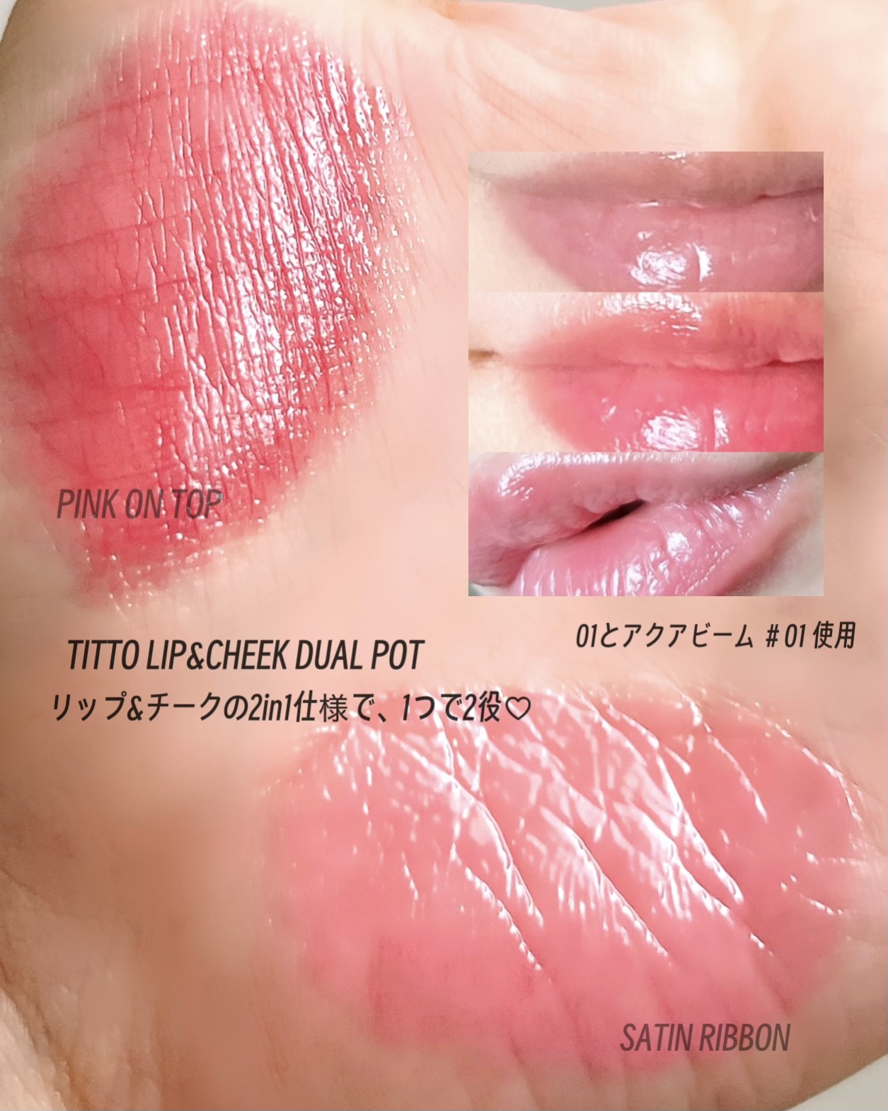 #PRtitto@titto_japan@titto_cosmeticリップアンドチークデュアルポットアクアビームデュアルポットリップ&チークの2in1仕様✨ベースカラー+ポイントカラーで自分だけの色をMIXできる💕体温でとろけるようなメルテ...